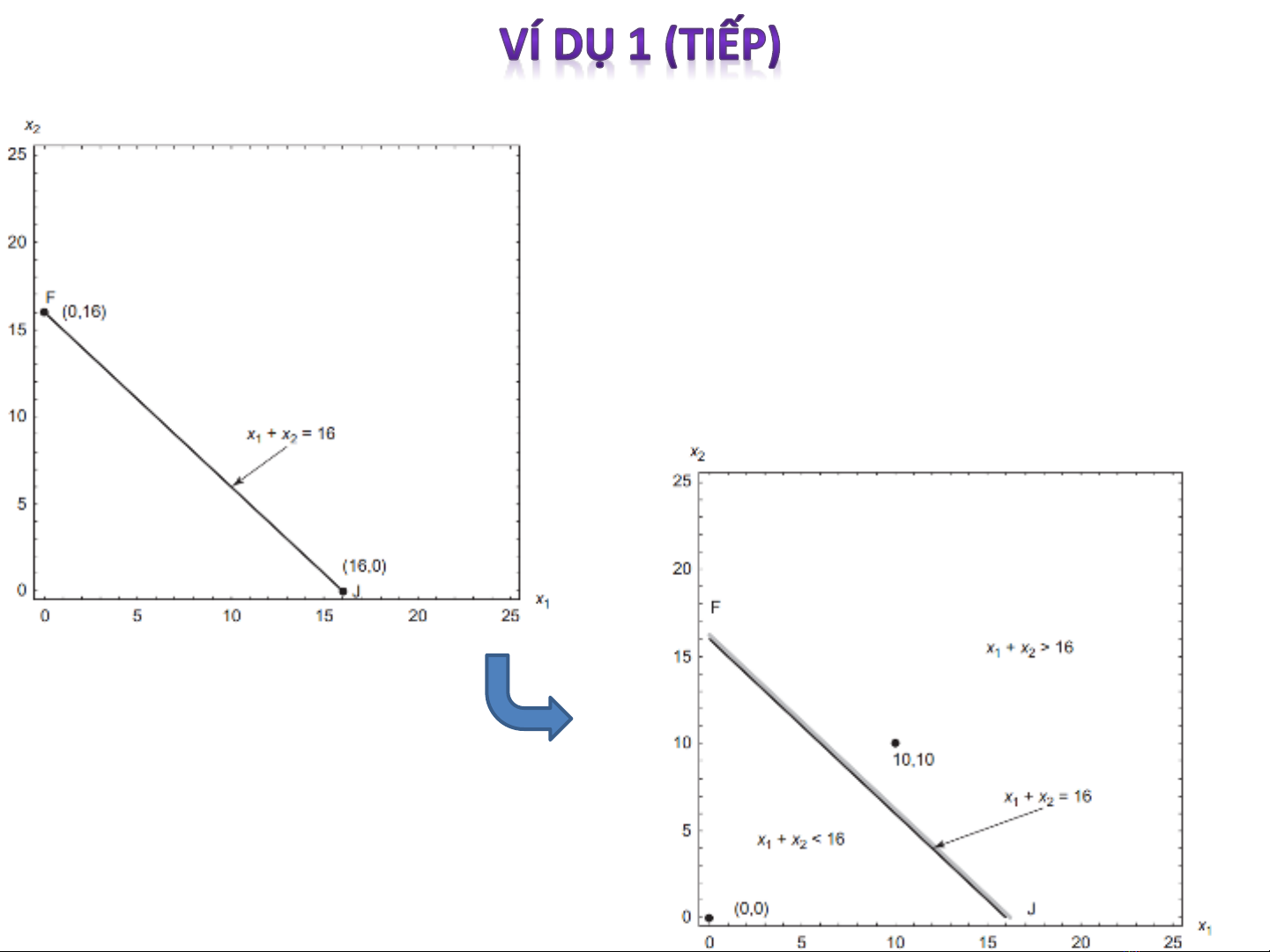 Xét ràng buộc đầu tiên, ta bỏ dấu bất đẳng thức ≤ để vẽ đồ thị