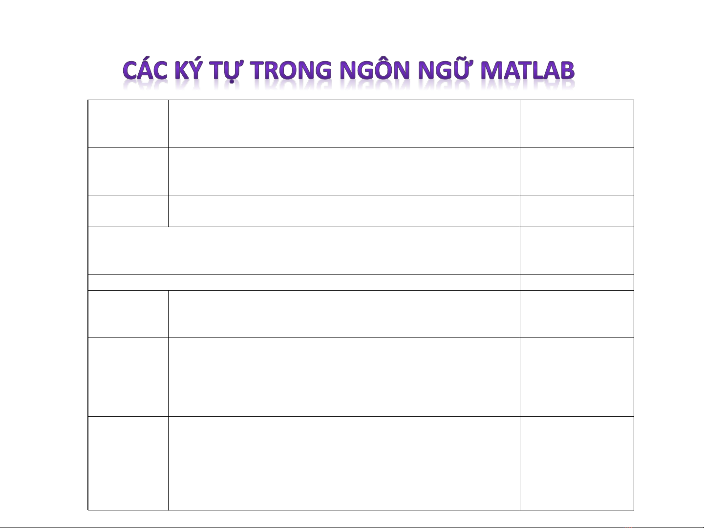 Trong MATLAB tên biến được bắt đầu từ chữ cái và có chiều