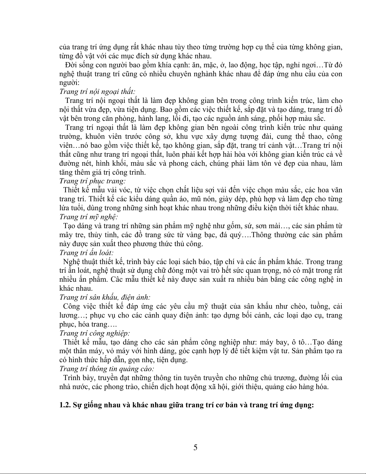 Trong các học phn tr c (của trang trí cơ bản) chủ yế gii thiệ những kiến thức cơ