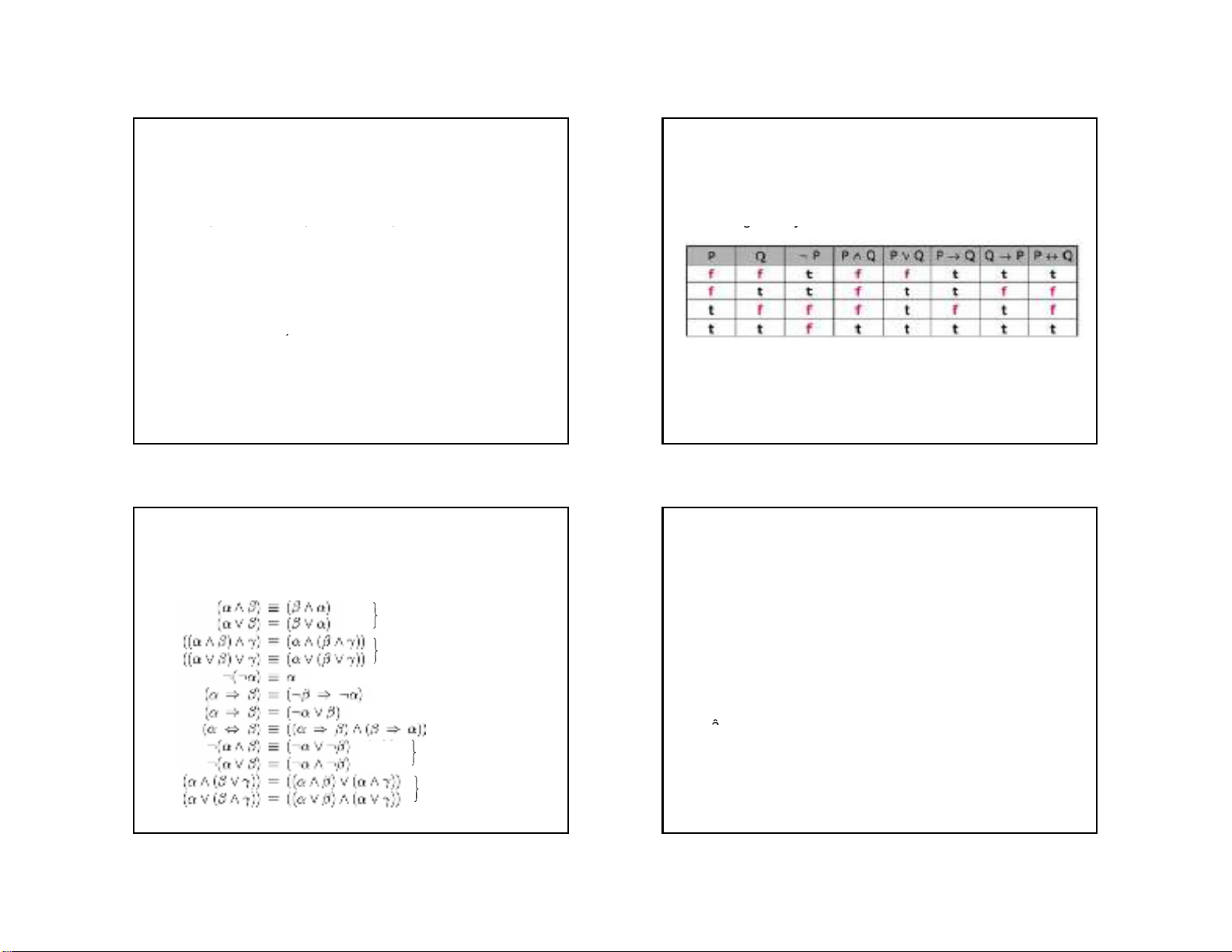 • Logic mệnh đề chỉ xử lý thông tin kiểu sự kiện đúng hoặc sai