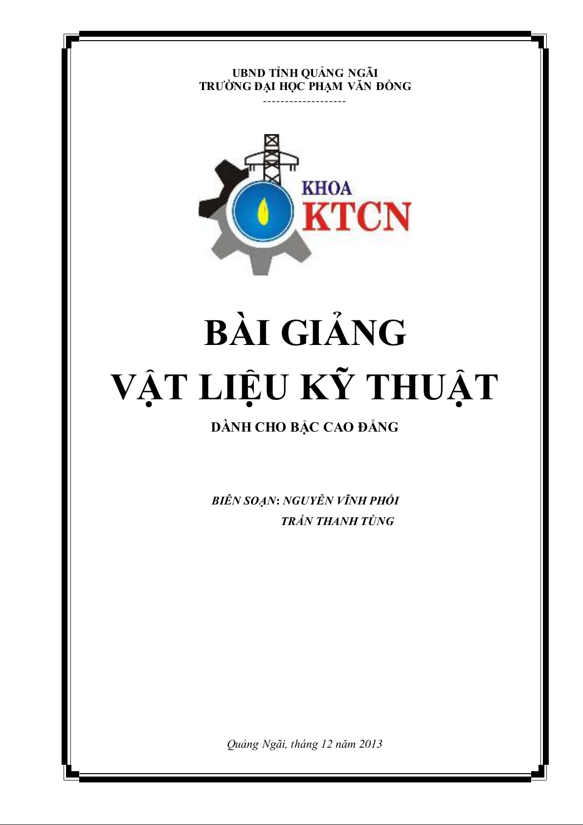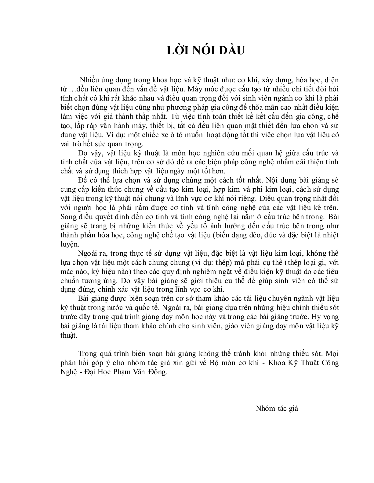 bài giảng là tài liệu tham khảo chính cho sinh viên, giáo viên giảng dạy môn vật liệu kỹ