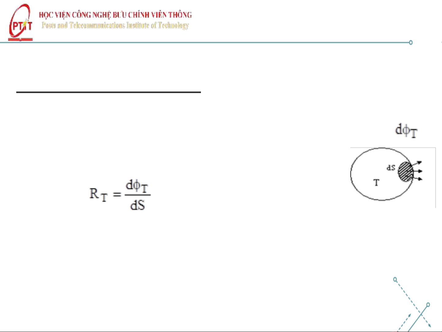 Định nghĩa: Năng suất phát xạ toàn phần của vật ở nhiệt độ T là một đại