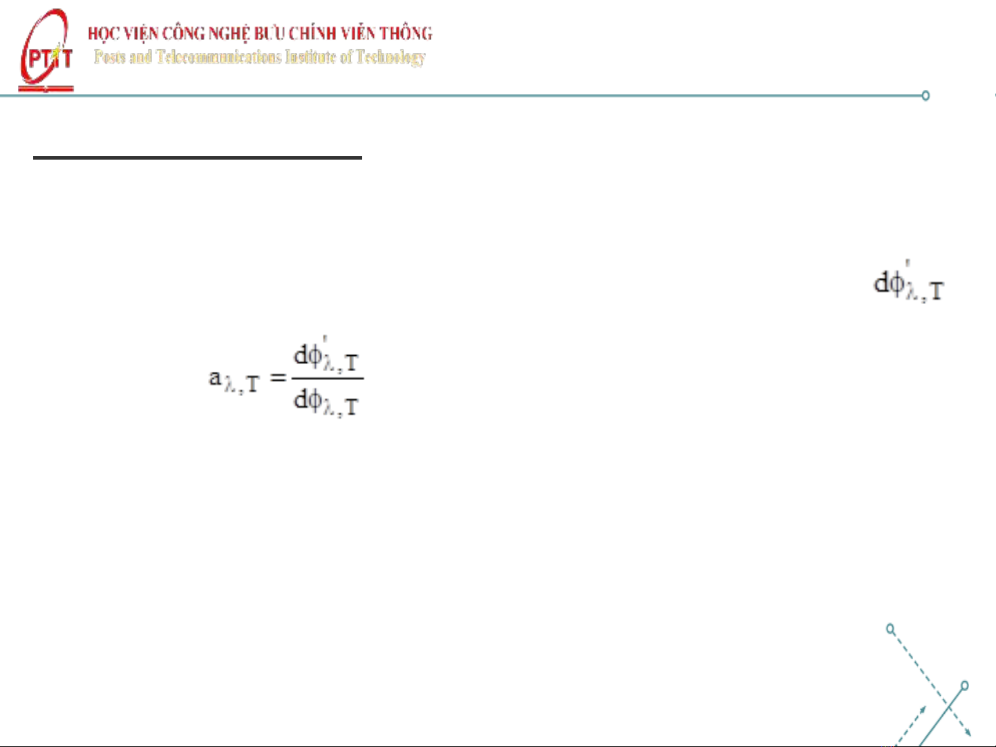 Gọi là hệ số hấp thụ đơn sác của vật ở nhiệt độ Tứng với bước sóng λ.