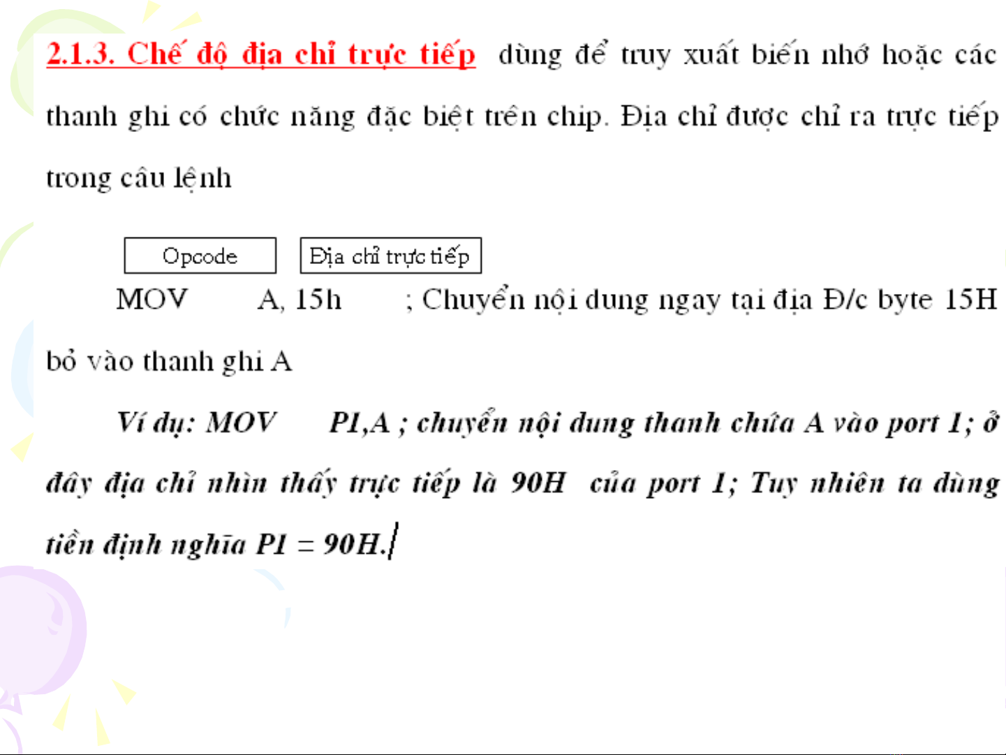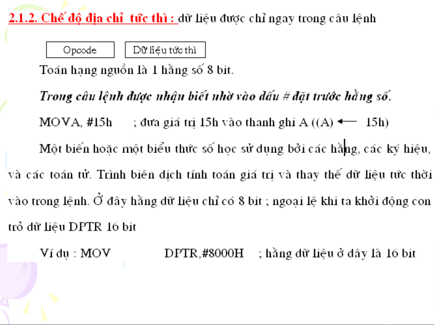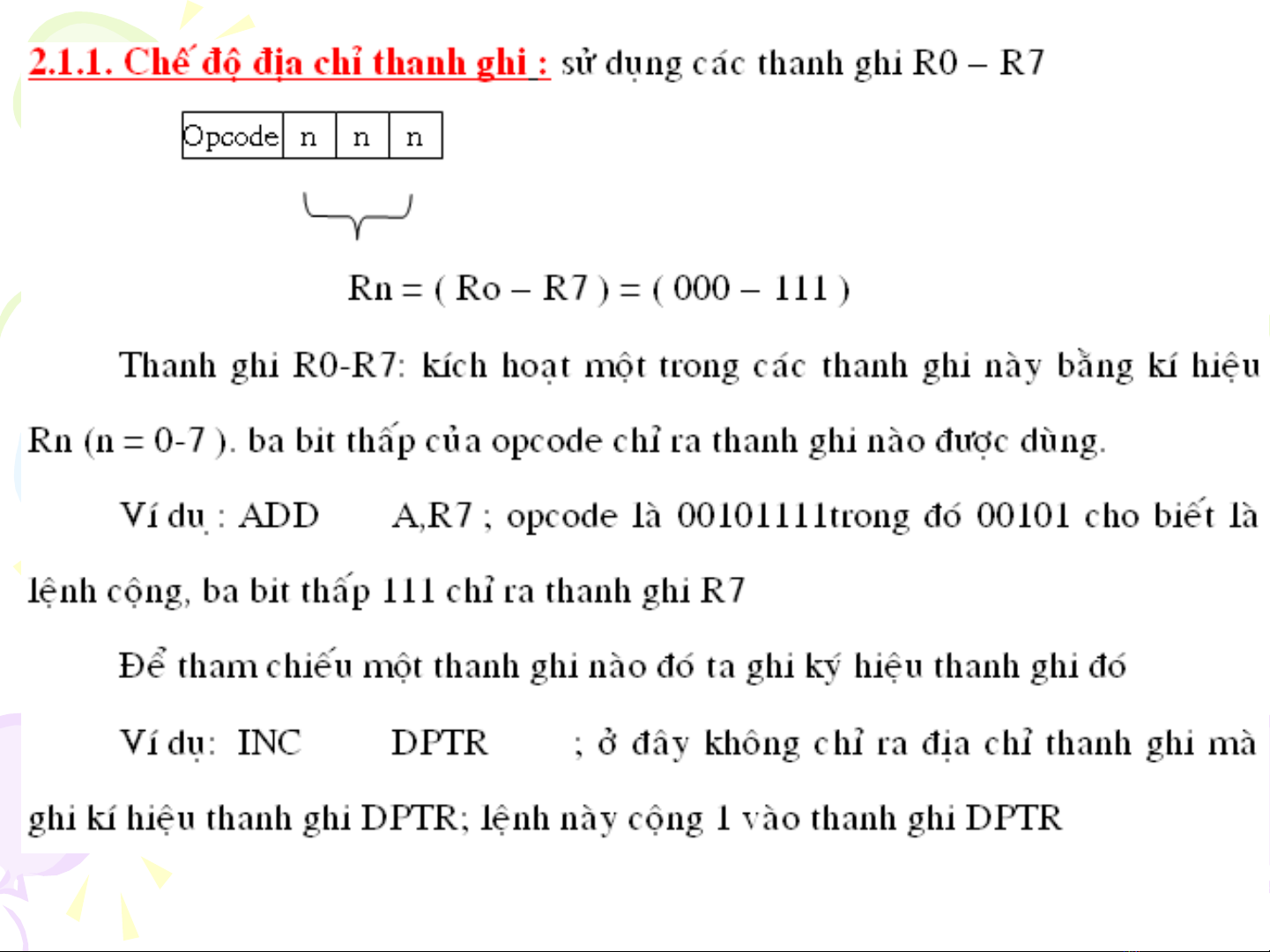 2.1. CAÙC CHEÁ ÑOÄ ÑÒA CHÆ (Addressing Mode) :