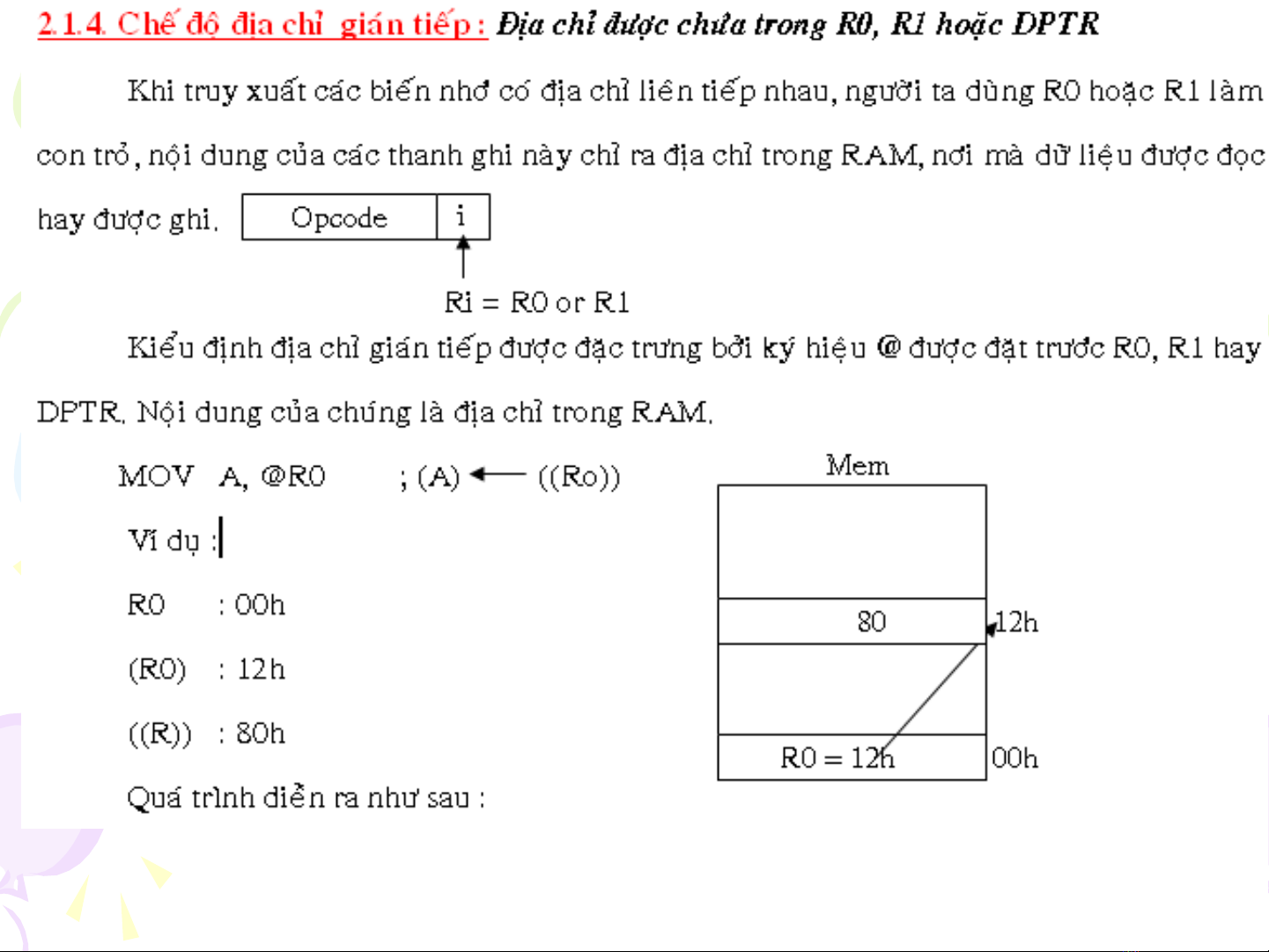 Thanh ghi R0 coù ñòa chæ 00H. Noäi dung thanh ghi R0 =12H. 12H