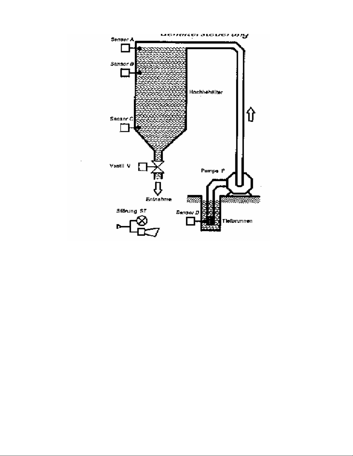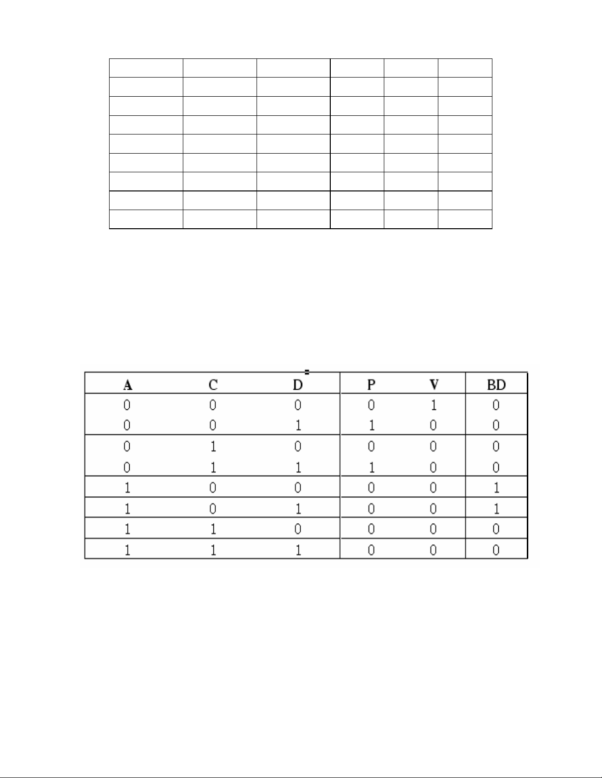 D (để đơn giản xem như không có cãm biến B) và tín hiệu ra gồm: bơm P, van V và đèn