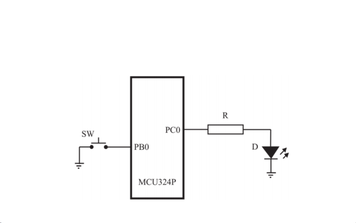 Ví dụ 1: Kết nối SW với một chân port làm ngõ vào, MCU324P nhận