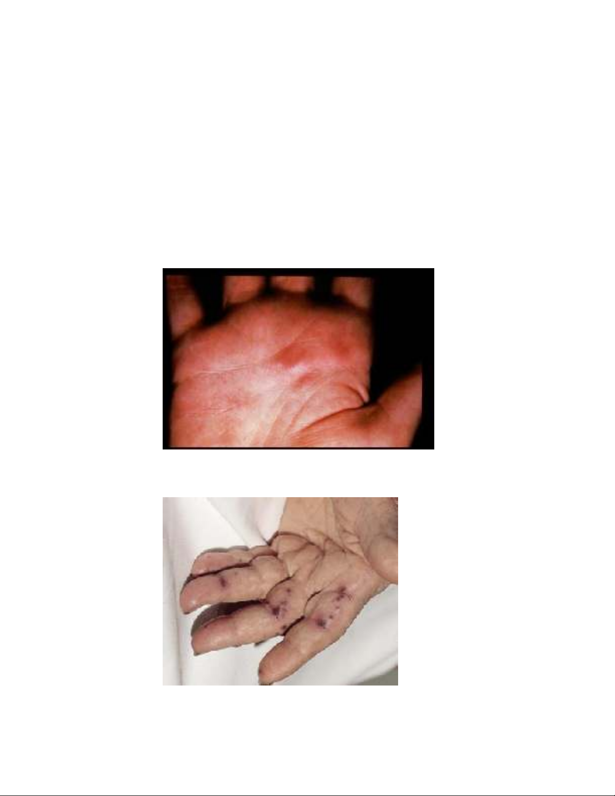 Nốt Osler: Nốt hồng ban, đau. Xuất hiện ở tay, chân và thường