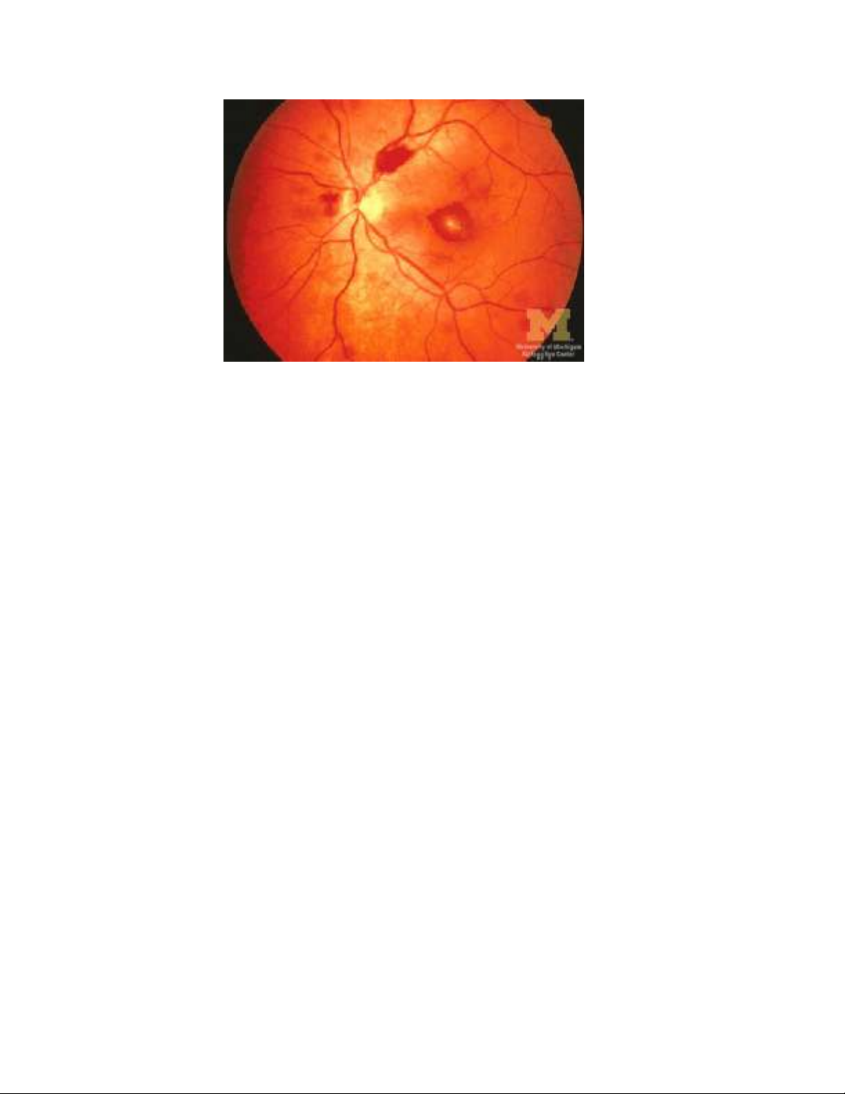Điểm Roth: Xuất huyết võng mạc với chấm trắng tại trung tâm.