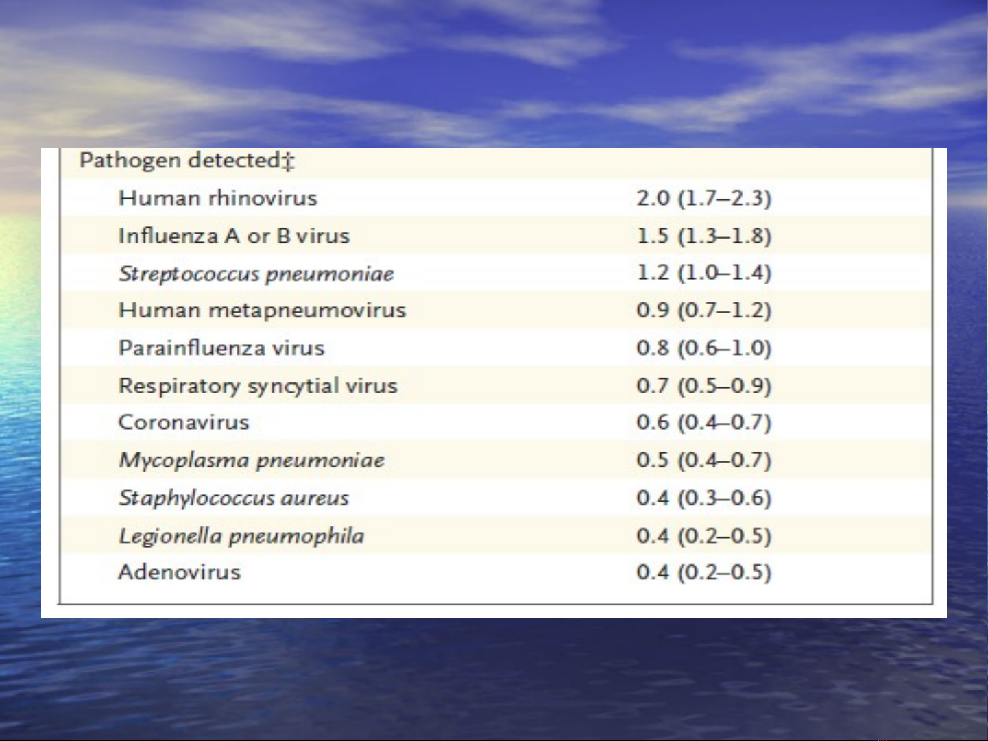 Tỷ lệ mắc ở cộng đồng thấp : 1 - <10% viêm phổi