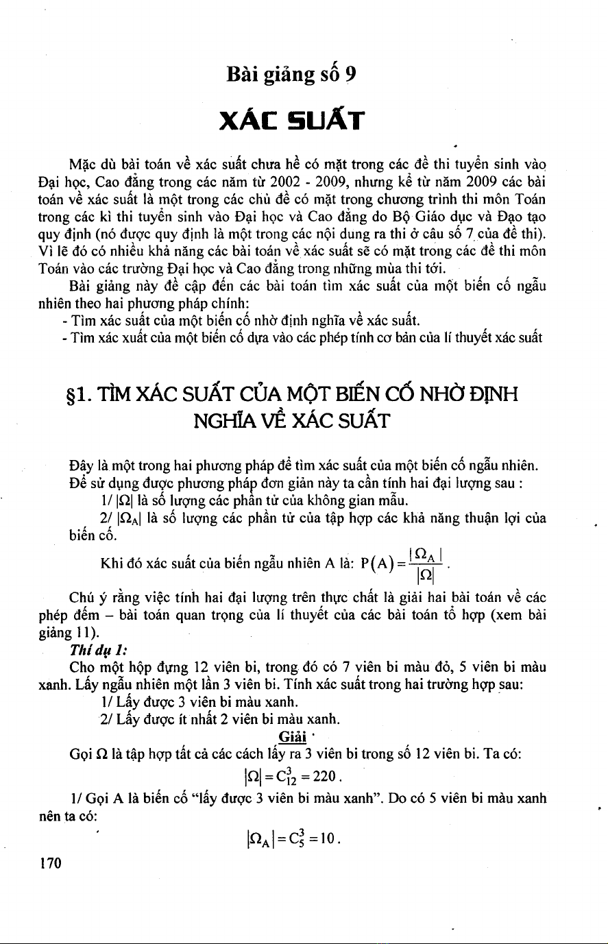 bài giảng số 9: xác suất