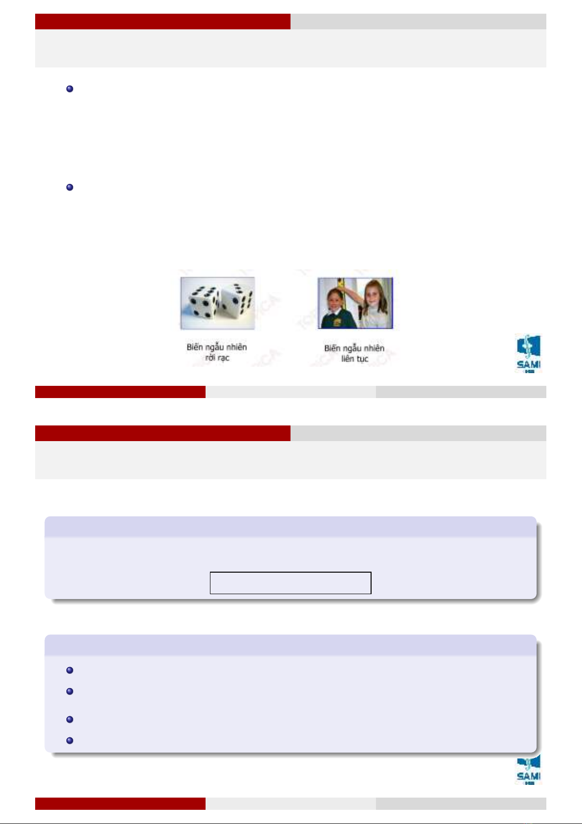 Lê Xuân Lý (SAMI-HUST) Biến ngẫu nhiên và luật phân phối xác suất 6/69Hà Nội, tháng 9 năm 2018 6 / 69