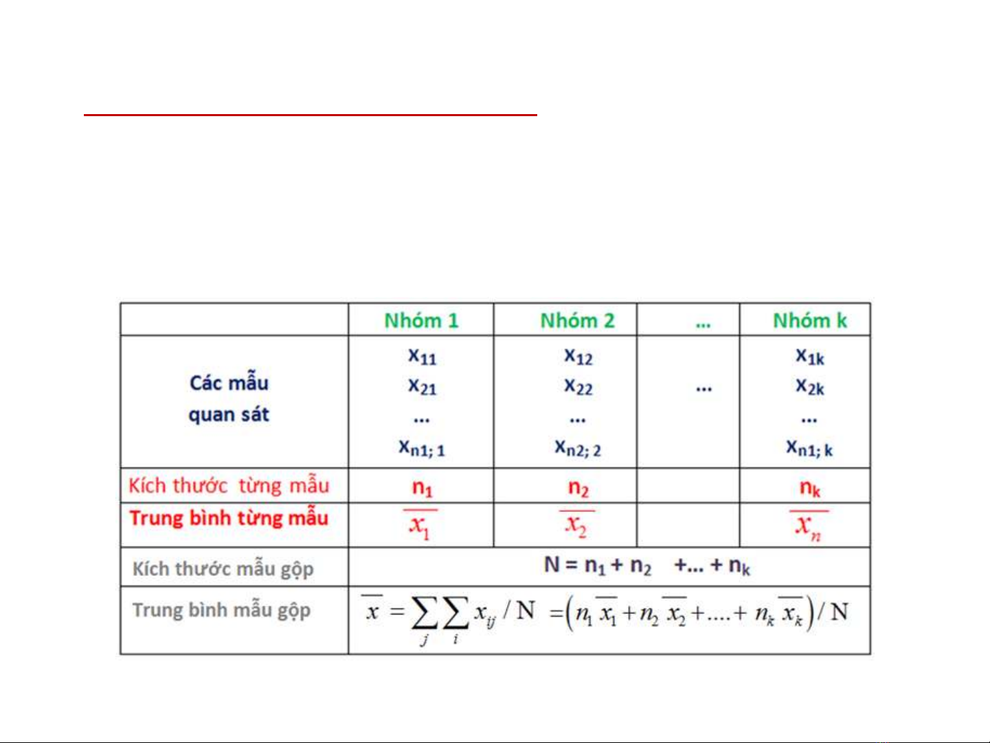Giả thiết không H0 : µ1 = µ2= … = µk .