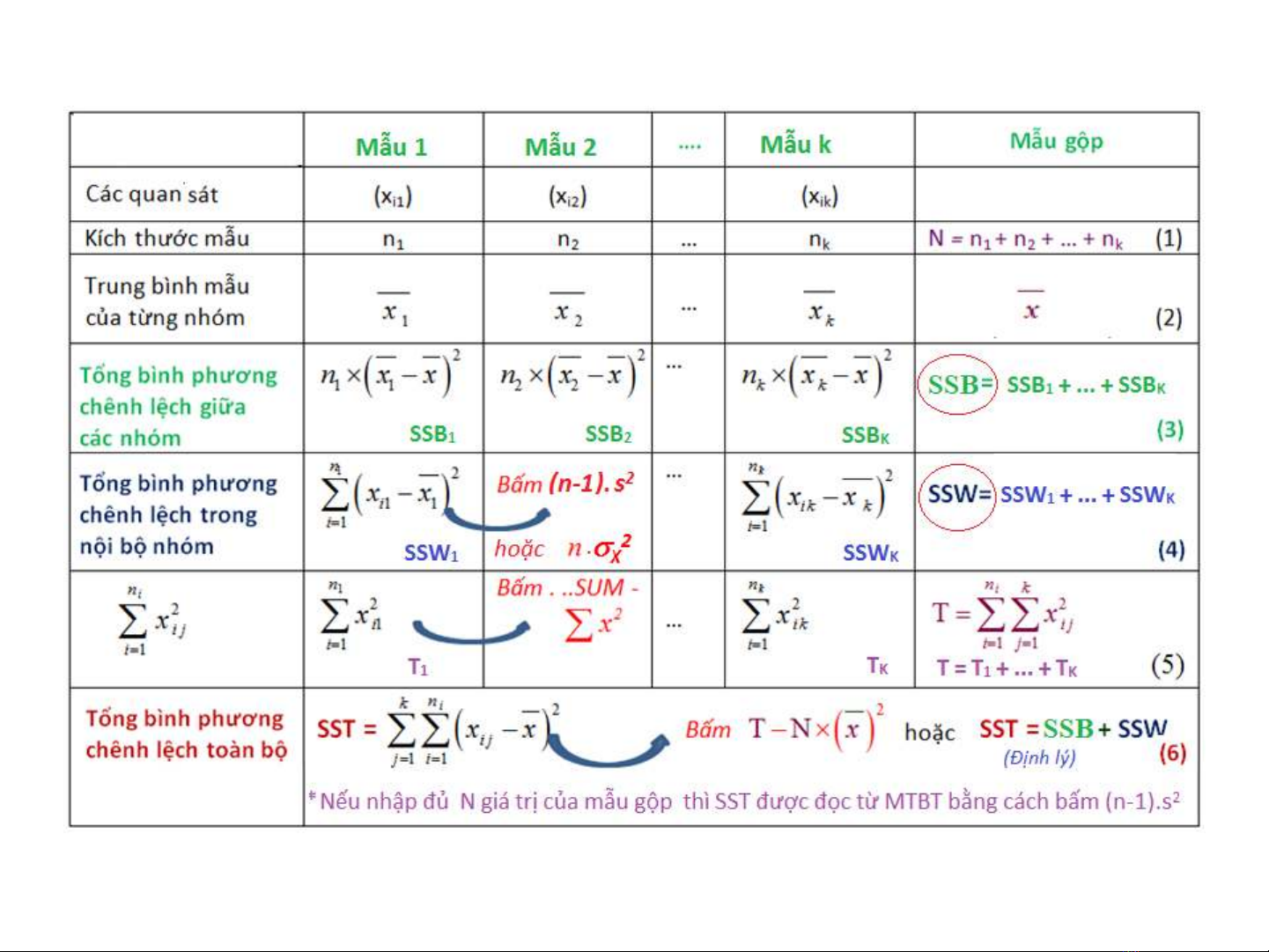 - Phương sai các tổng thể bằng nhau (12 = 22 =… = k2 ).