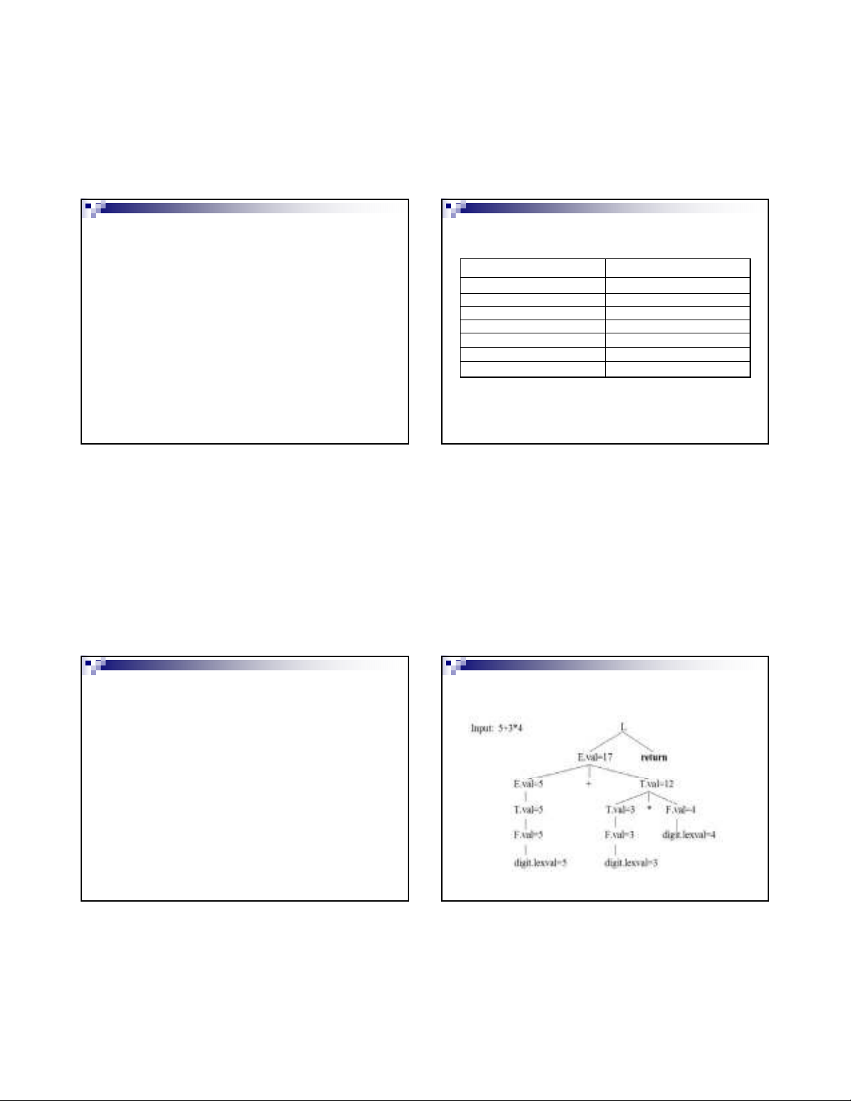 •Các ký hiệu E, T, F liên hệ với thuộc tính tổng hợp val