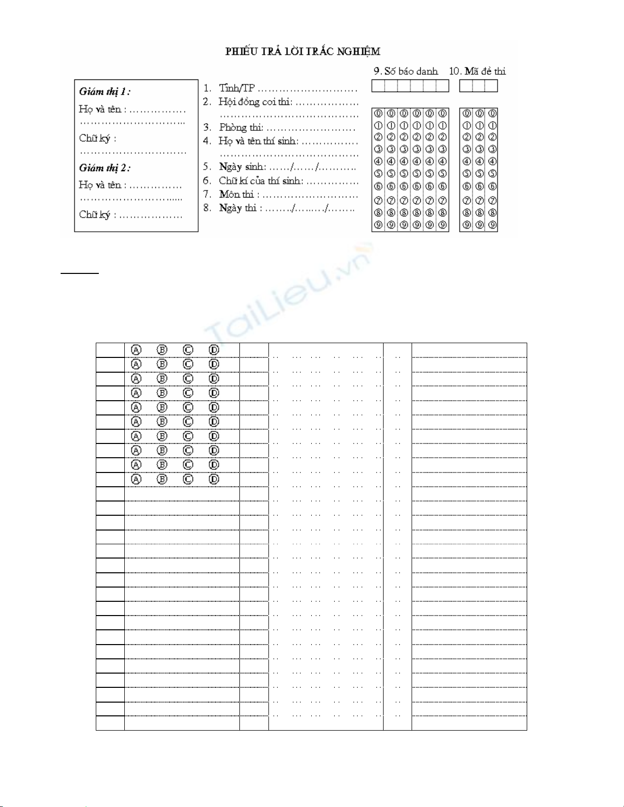 - Đối với mỗi câu trắc nghiệm, thí sinh được chọn và tô kín một ô tròn tương ứng với