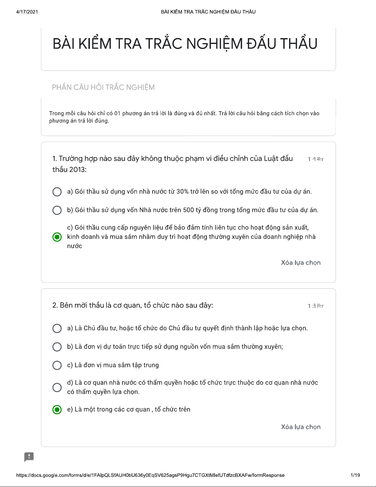 Đề thi kết thúc học phần học kì 3 môn Quản lý đấu thầu và hợp đồng năm 2021-2022 có đáp án