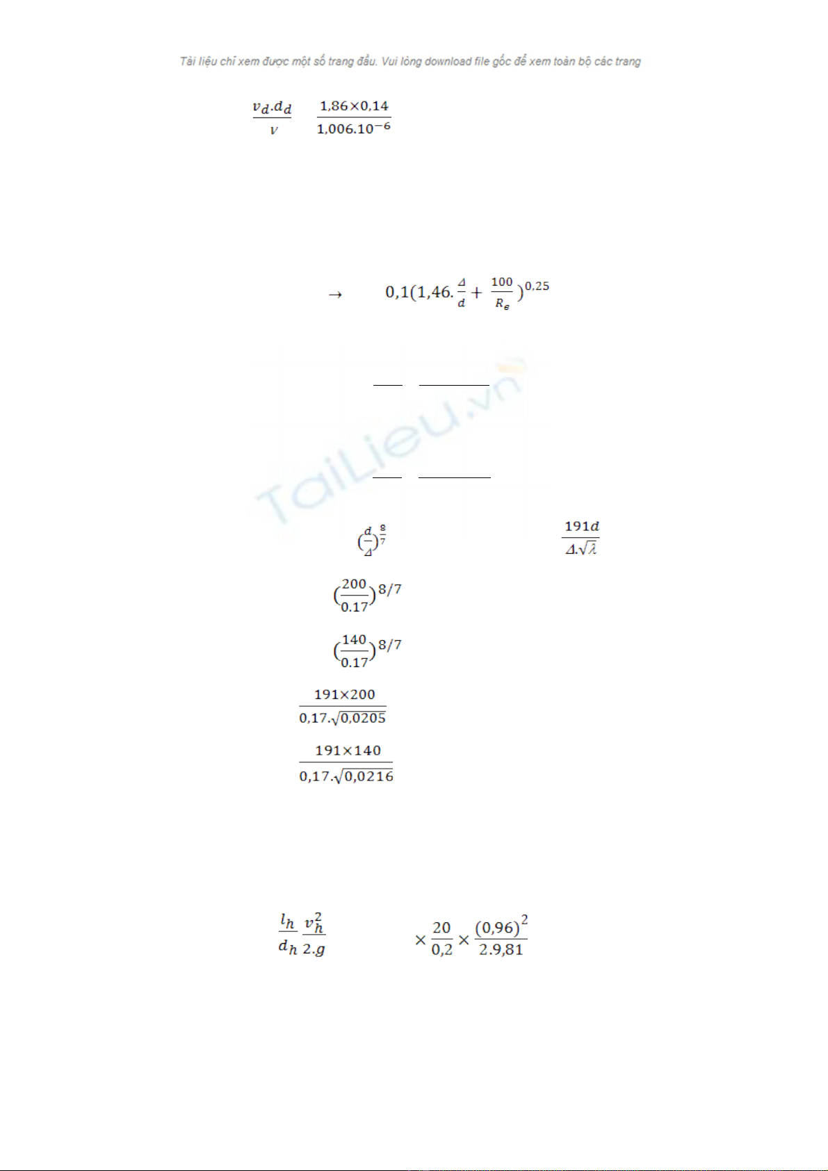 Ch t l ng ch y trong ng là n c 20ấ ỏ ả ố ướ ở 0C nên ta có h s nh t là : ệ ố ớ ν =