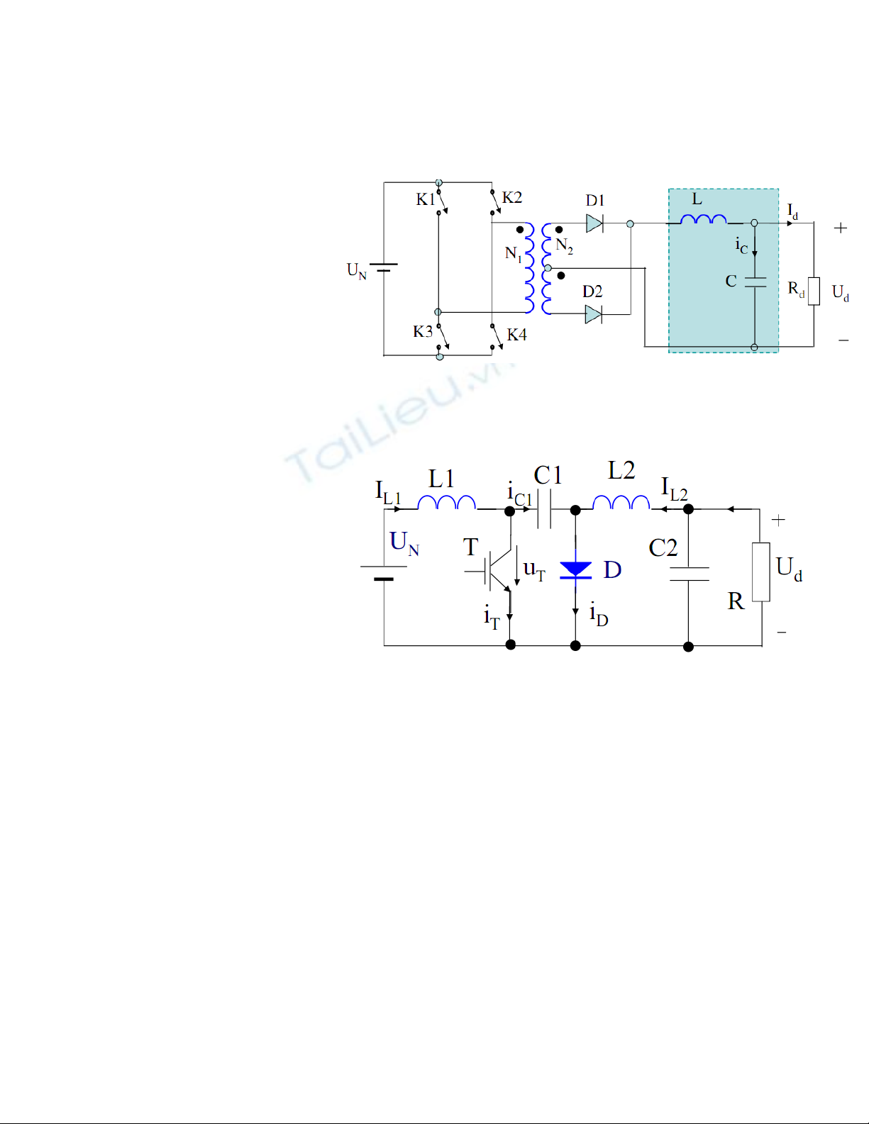 Rd = 10Ω. T n s chuy n m ch c a khóa bán d n K là fầ ố ể ạ ủ ẫ cm = 10kHz. T s bi n áp n = N1/N2 =ỷ ố ế