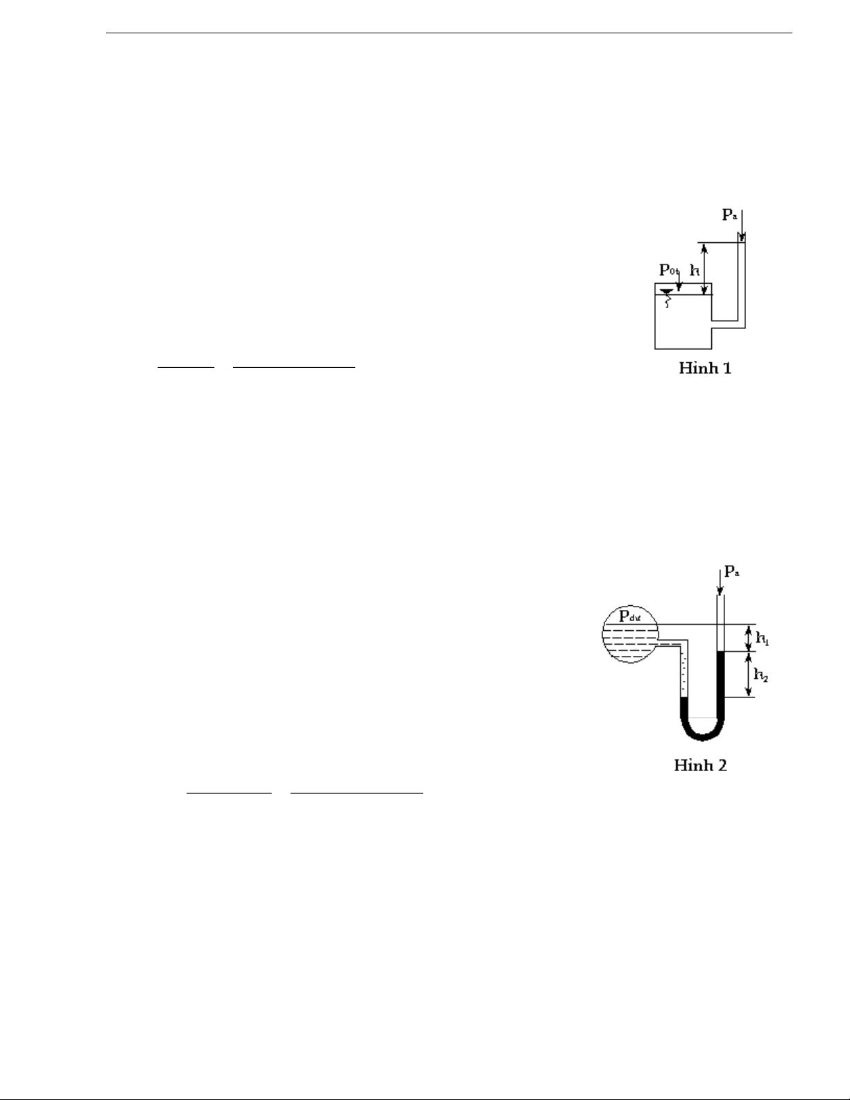 : thì mực nước trong bình 1 hạ xuống 1 đoạn