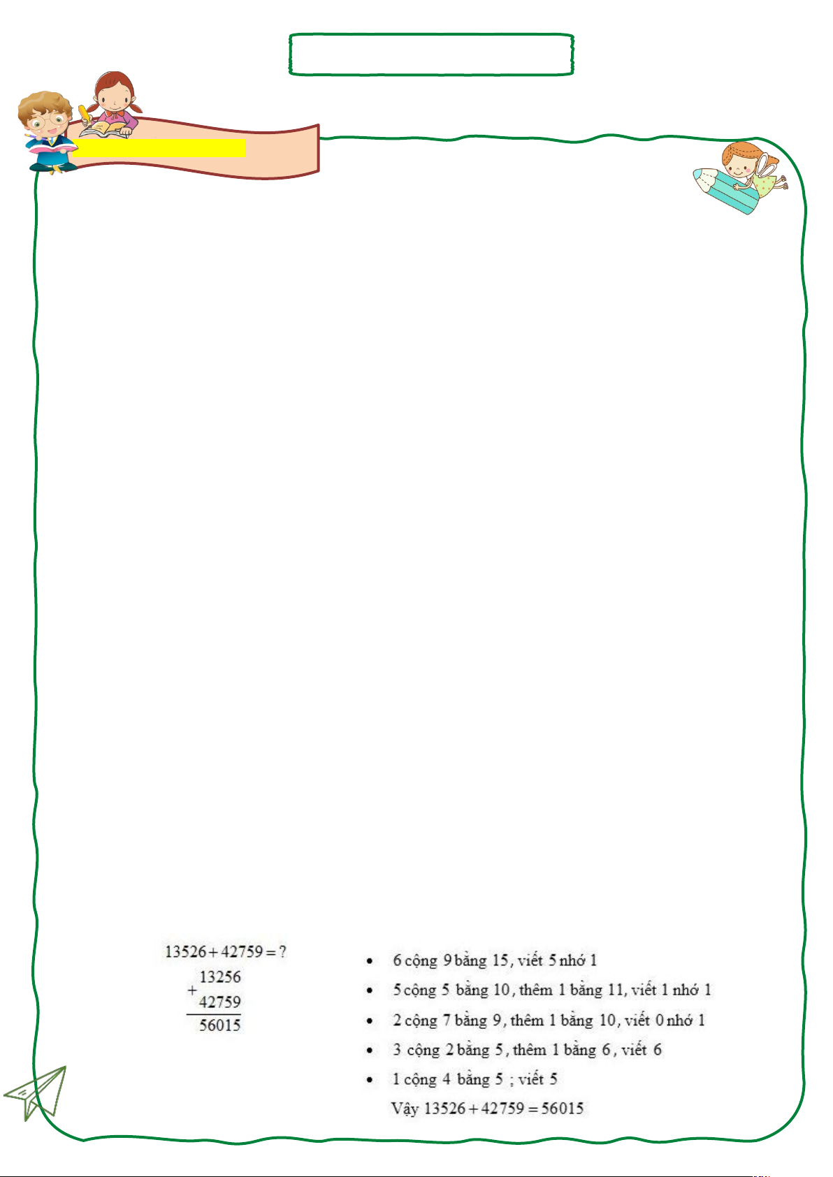 Cách thực hiện phép tính cộng không nhớ hoặc có nhớ các số trong phạm vi 100000