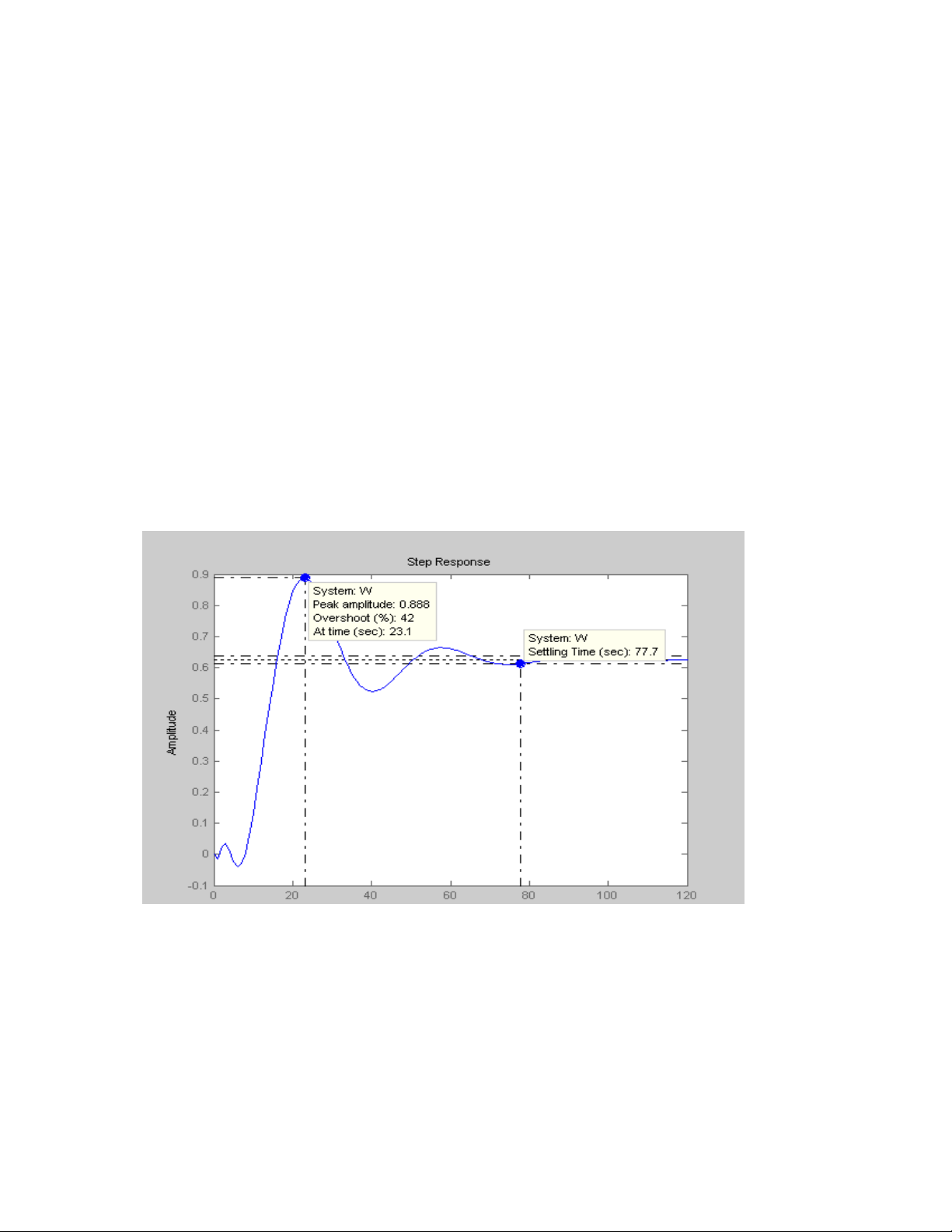 Từ đồ thị trên ta có σmax=4.25% < 20% và thời gian quá độ là 59sec<77.7sec