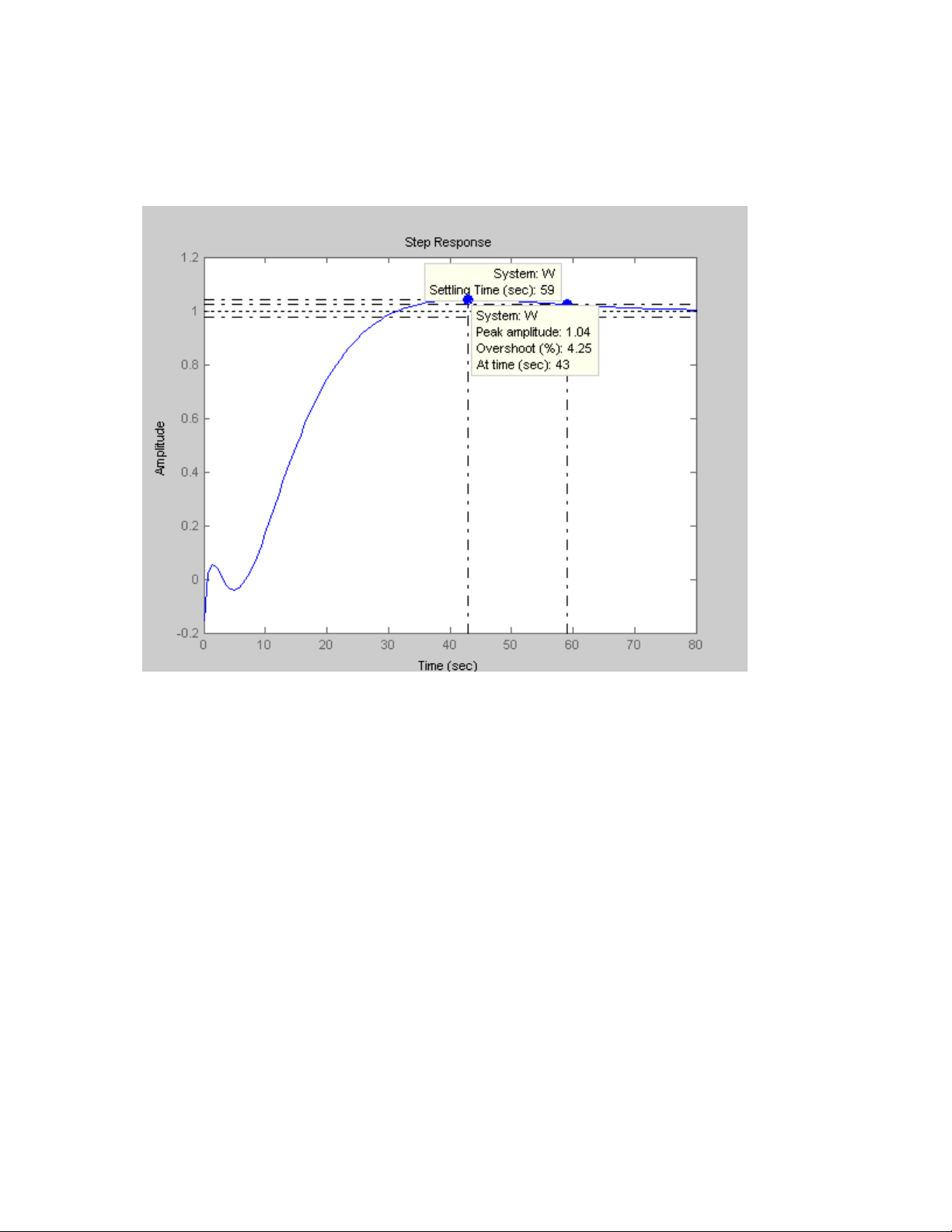 Từ đồ thị trên ta có σmax=4.25% < 20% và thời gian quá độ là 59sec<77.7sec