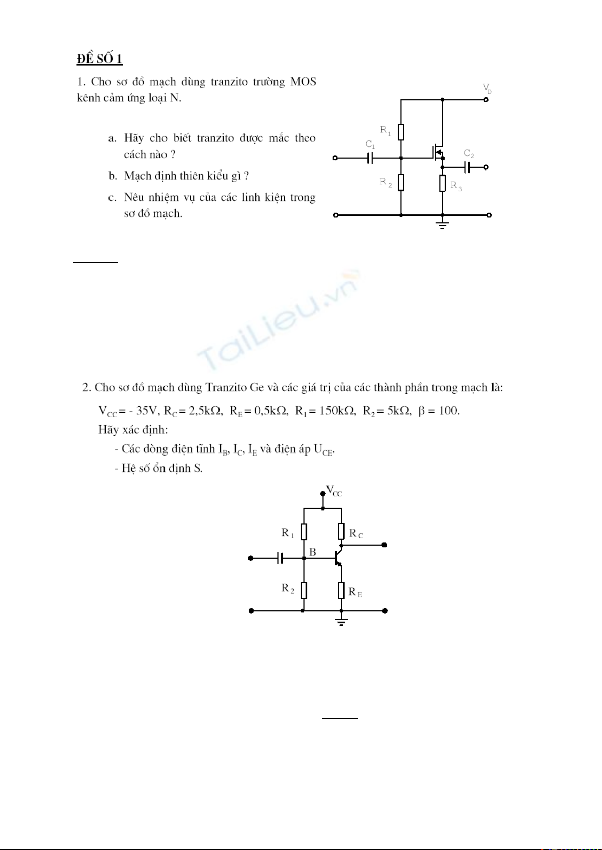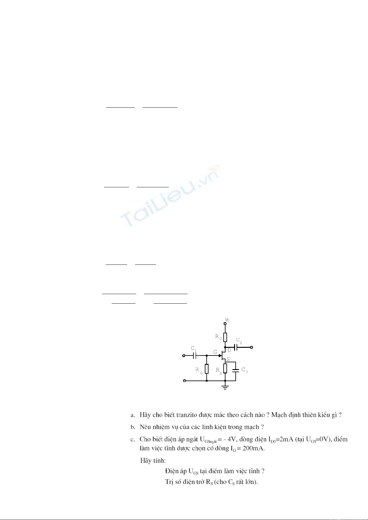 a. Transistor đ c m c theo cách c c ngu n chung SC – Source Common. M ch đ nhượ ắ ự ồ ạ ị