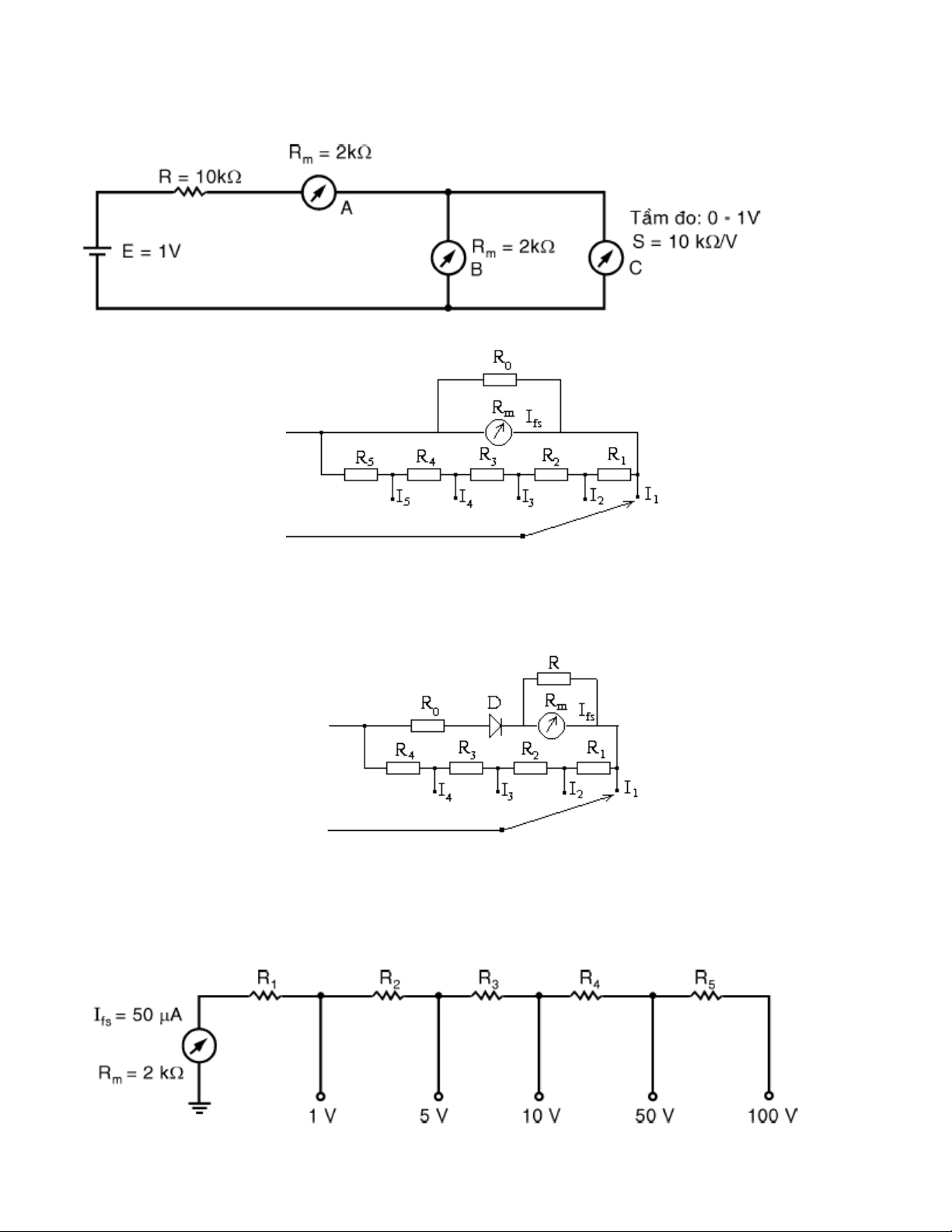 Tính caùc ñieän trôû R1, R2, R3, R4? Bieát raèng R=0,5k, R0=0,5k, Rm=1k , Ifs=50A, VD(DC)=0.3V,
