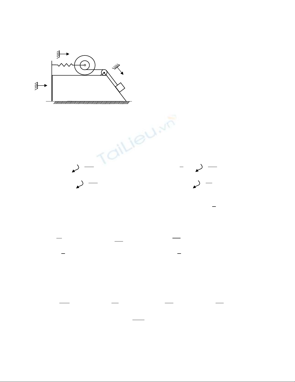 5/ Cho R = 2r, m1 = 3m2, T = 4m2(VA)2, ∑A = -0,5Kx2. Tính gia tốc WA của tải A.