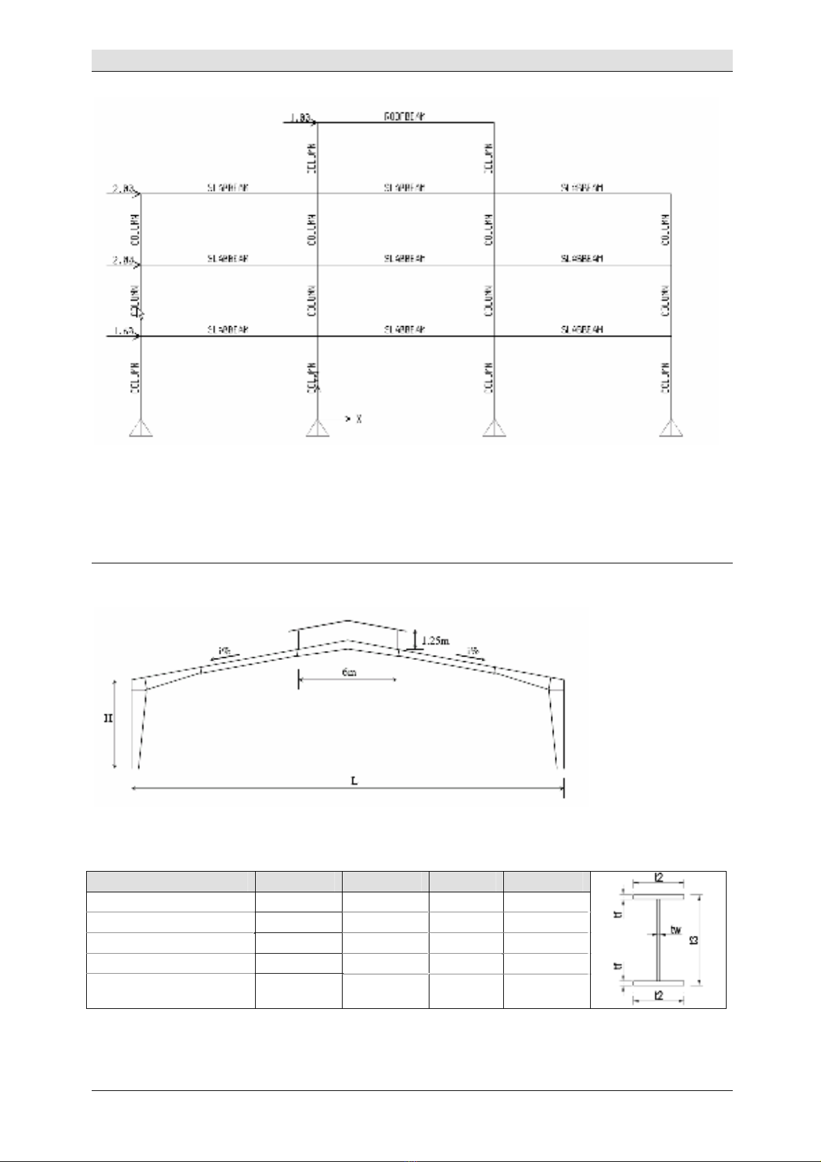 Moät khung theùp coù nhòp 9m, chieàu cao taàng 1 laø 4.2m, caùc taàng coøn laïi laø 3.6m (hình 1.1b). Ñaây laø