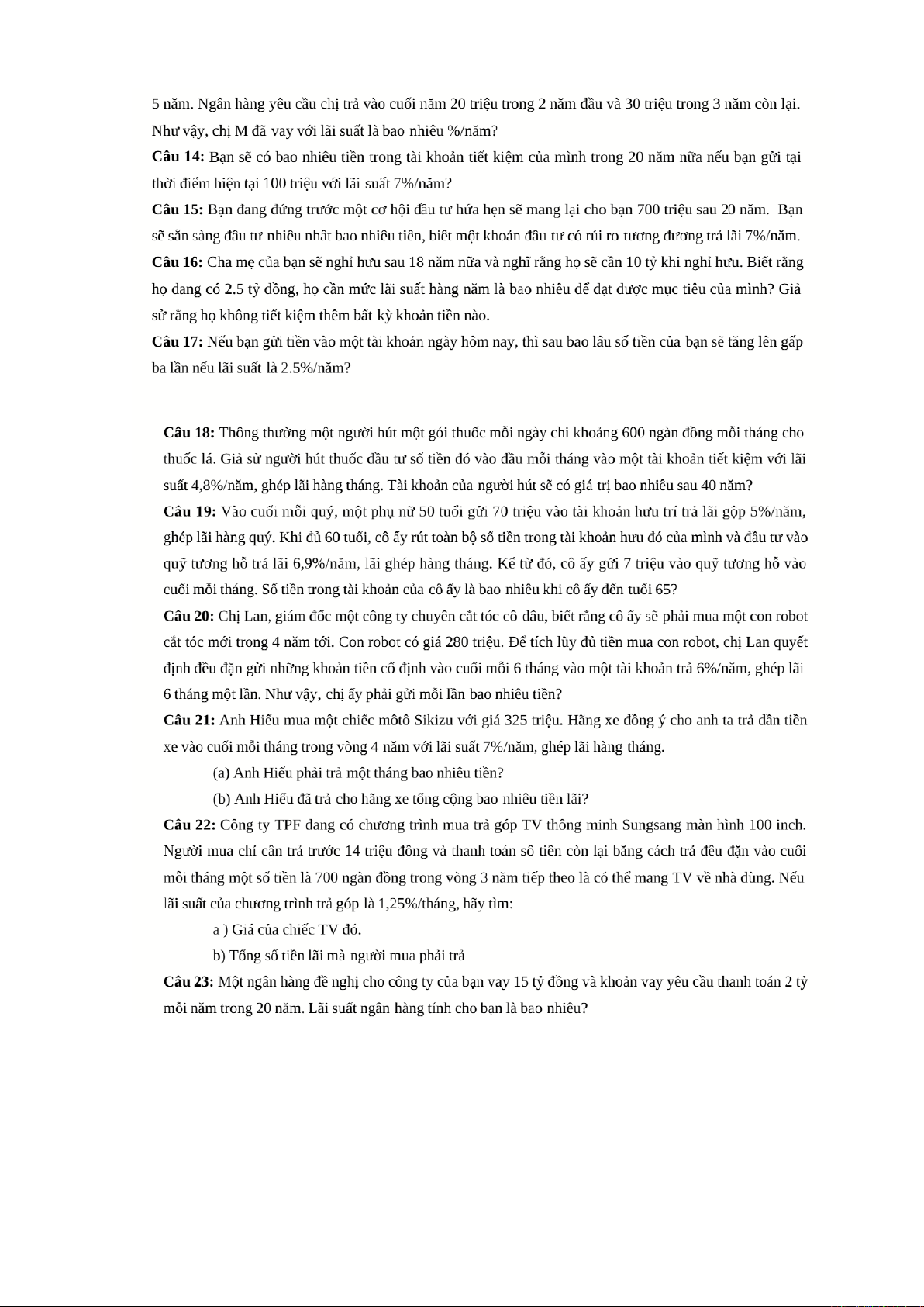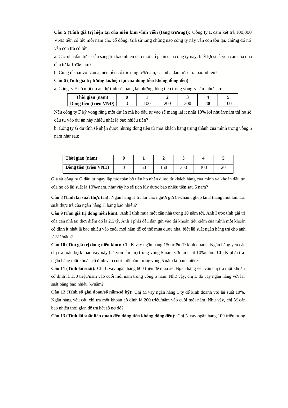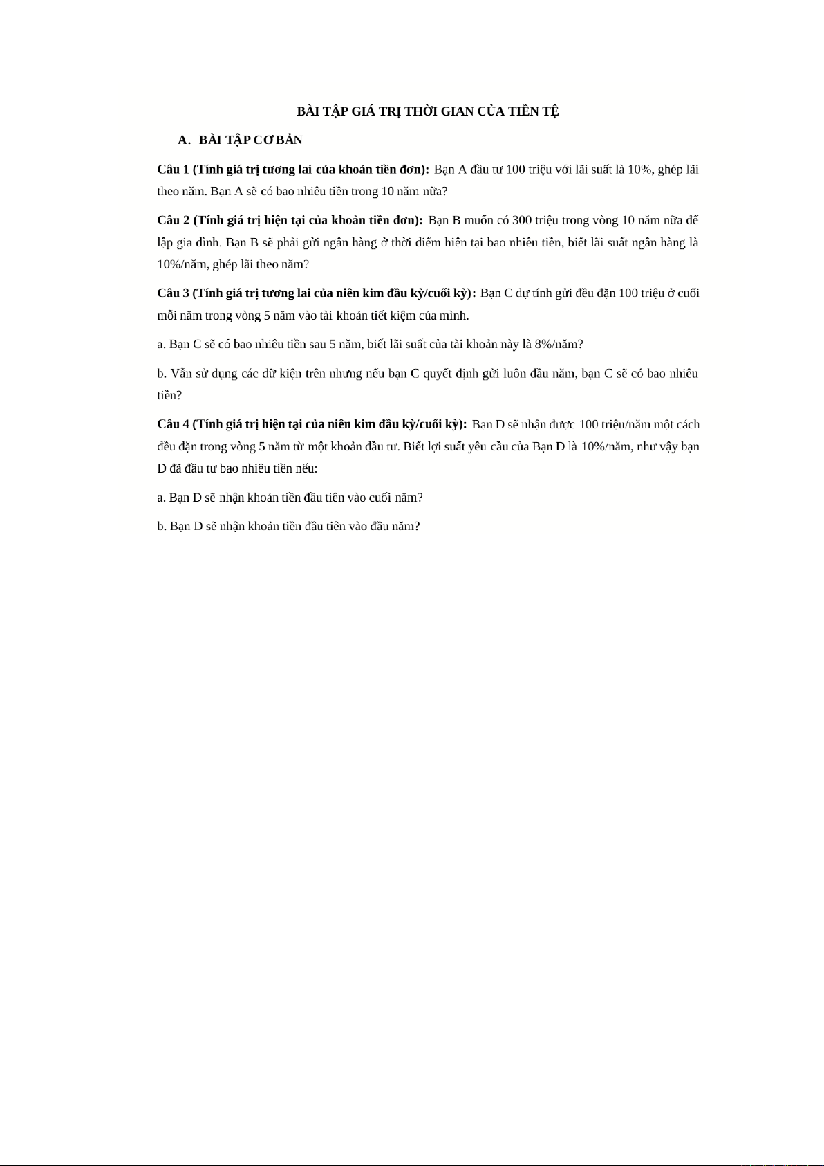 Bài tập Giá trị thời gian của tiền tệ