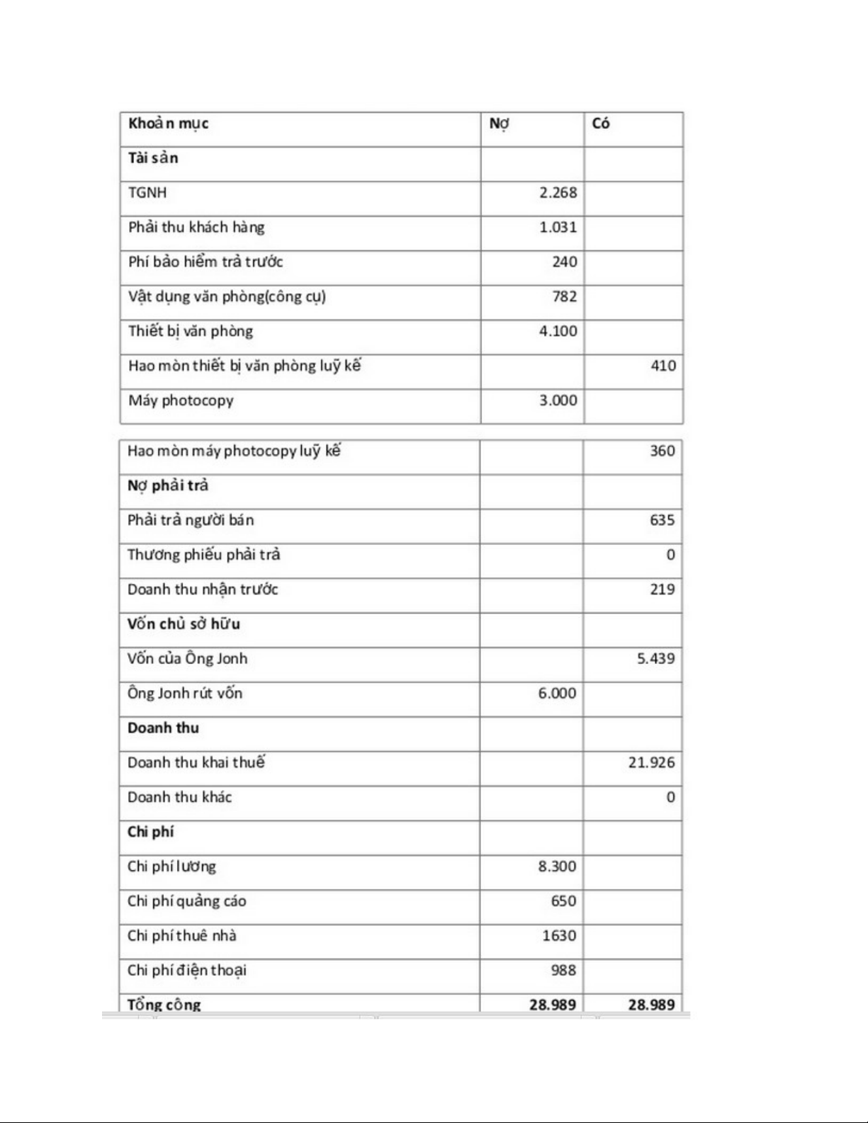 Bài tập 3: Sau khi tốt nghiệp đại học kế toán, Ông Jonh có mở một văn