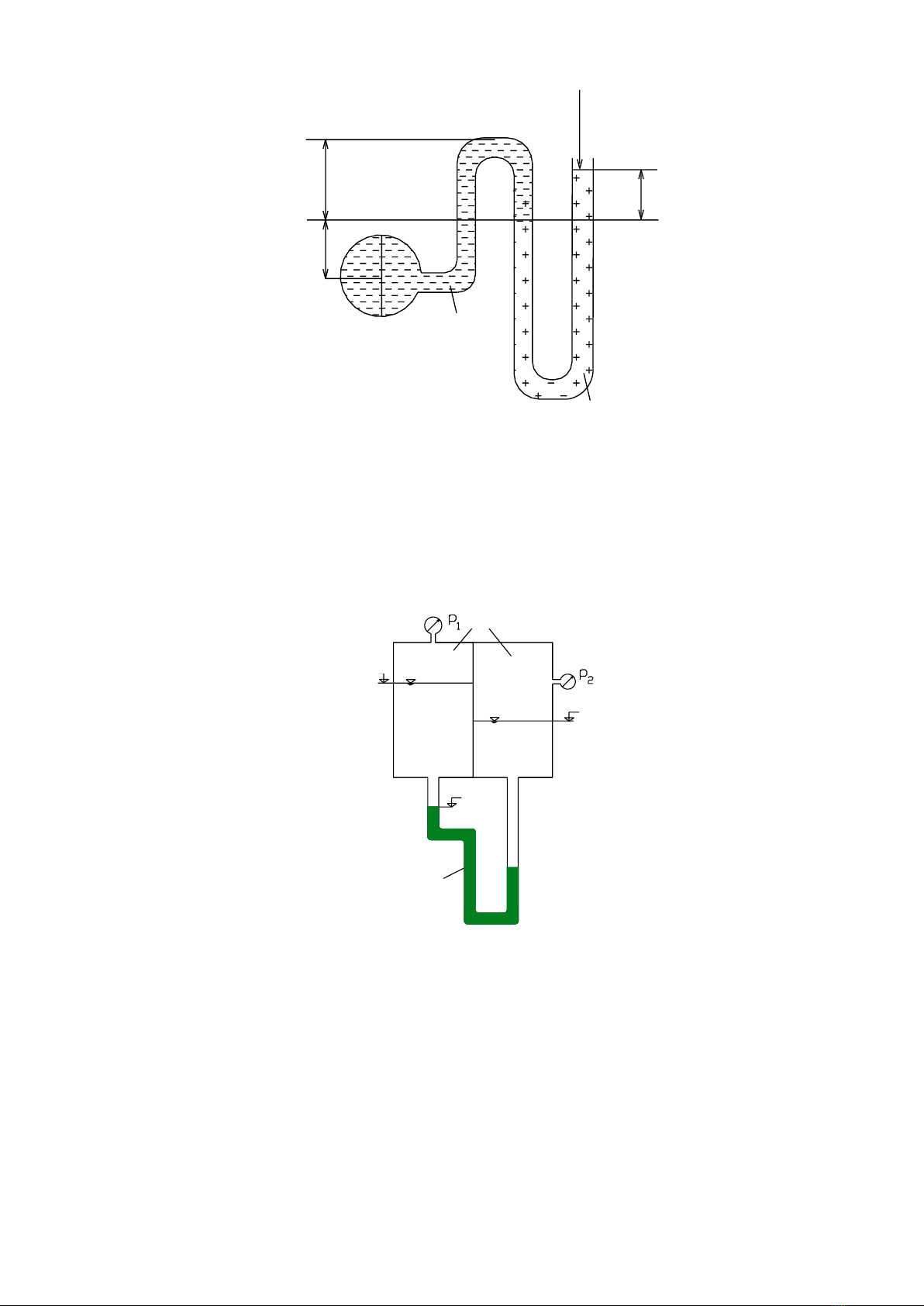 p1 = 0,9 atm, p2 = 1,86 atm vµ ®é cao cña c¸c møc chÊt láng biÓu diÔn nh- h×nh vÏ. BiÕt