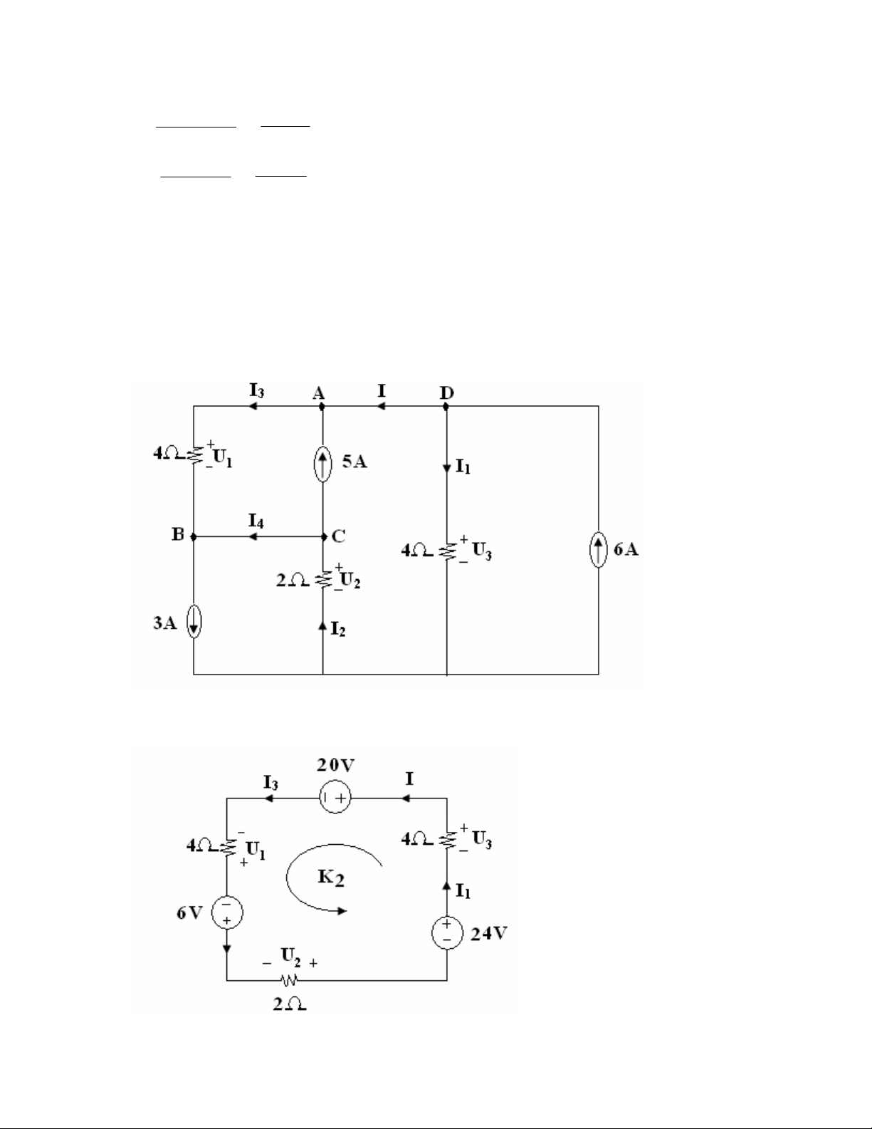 K1B: I4 = I3 + I1 = -6 + 2 = - 4 (A )