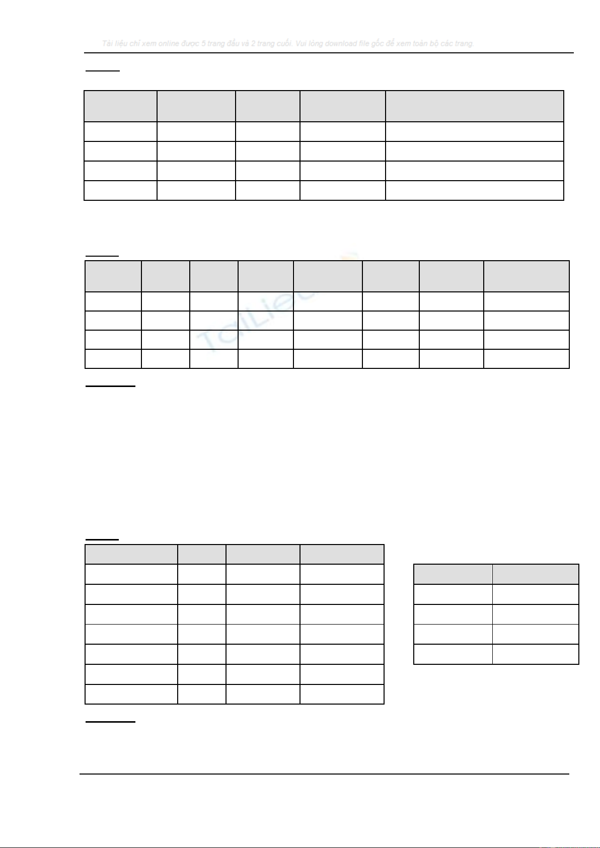 Bài 1: Dùng các phép toán số học để tính các giá trị cho các ô trống.