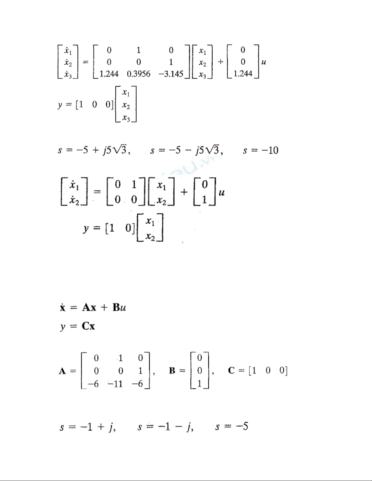 Xác định luật điều khiển hồi tiếp trạng thái, sao cho hệ kín có cực ở -