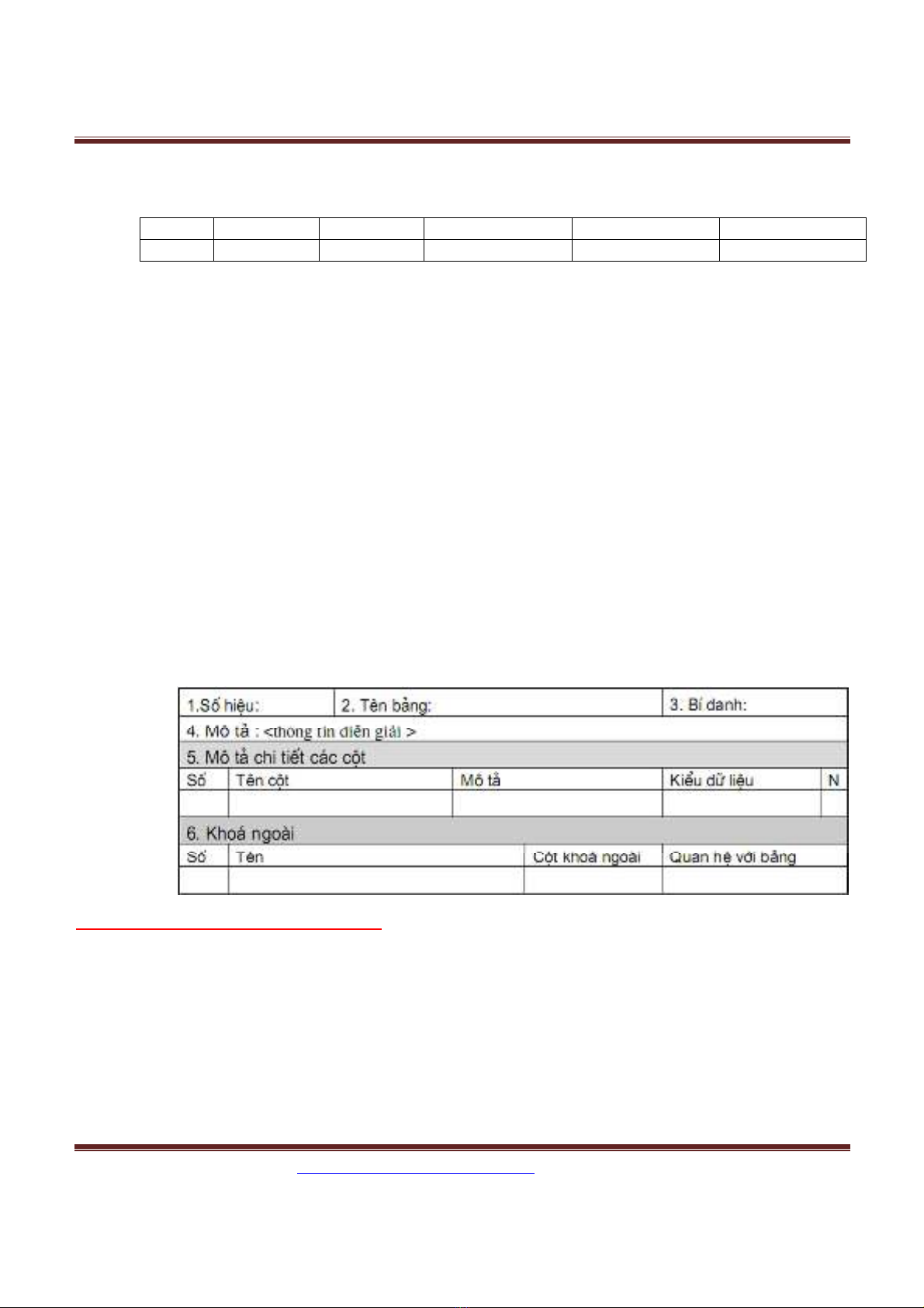 STT Khoá chính Khoá ngoại Tên trường Kiểu dữ liệu Diễn giải