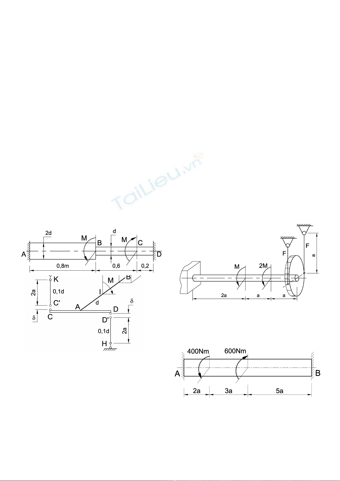m t c t ngang 2cmặ ắ 2. Thanh ch u các mômen xo n nh hình 16. Xác đ nh ng su tị ắ ư ị ứ ấ