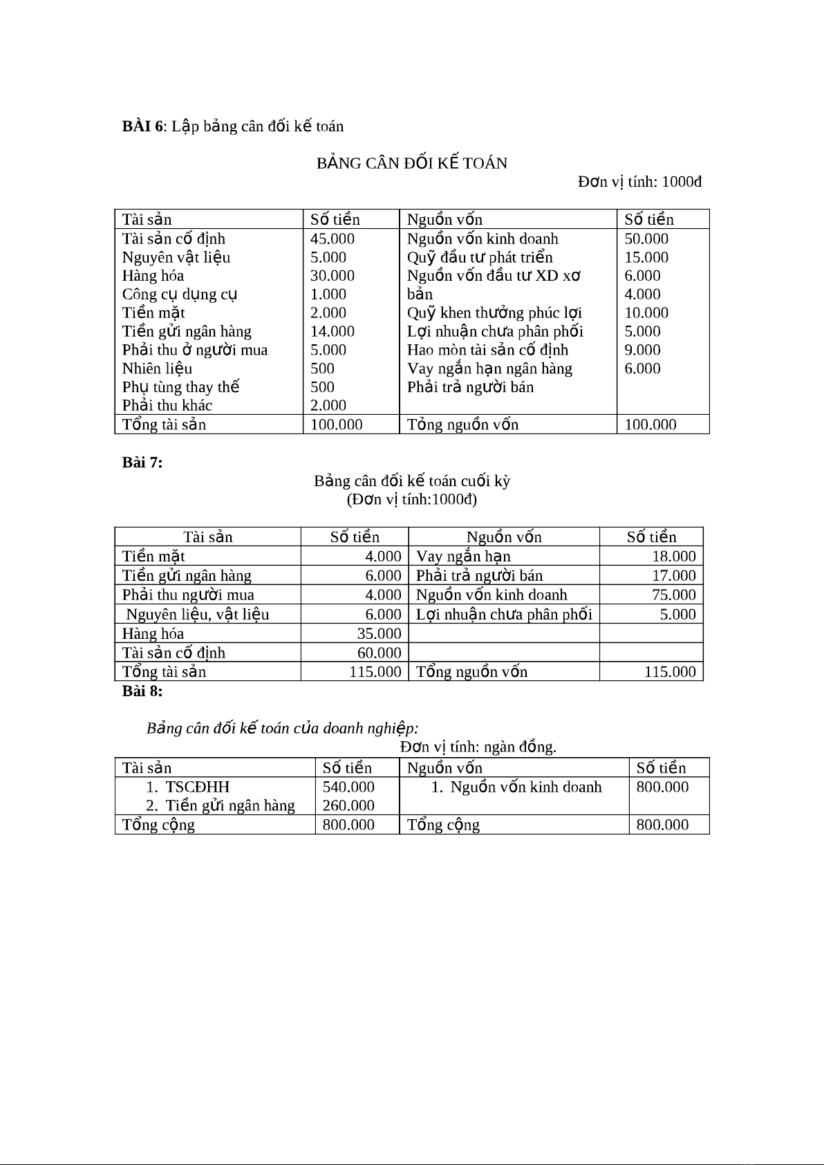 Bài tập: Nguyên lý kế toán (Có hướng dẫn lời giải)