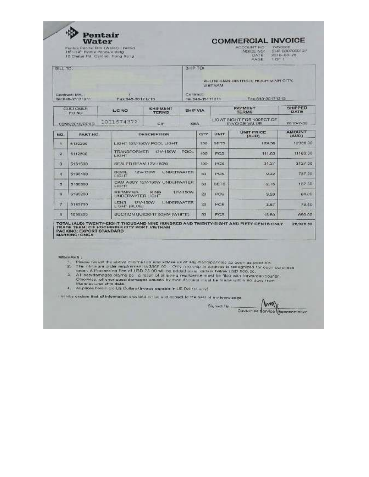 c. Invoice (đính kèm), các thông tin khác tìm từ chứng từ đính kèm này.