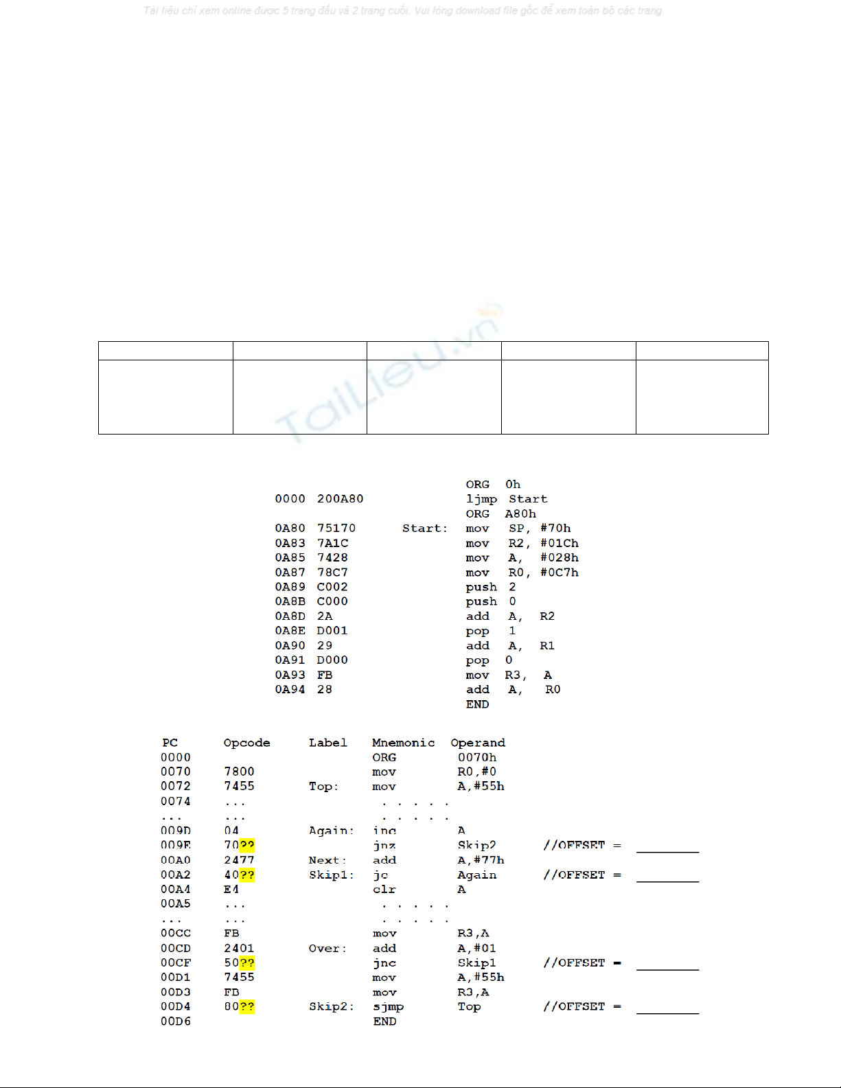 4. Tính độ dời (offset) (theo số hex) cho các lệnh có mã máy có byte ghi “??” trong đoạn chương trình sau: