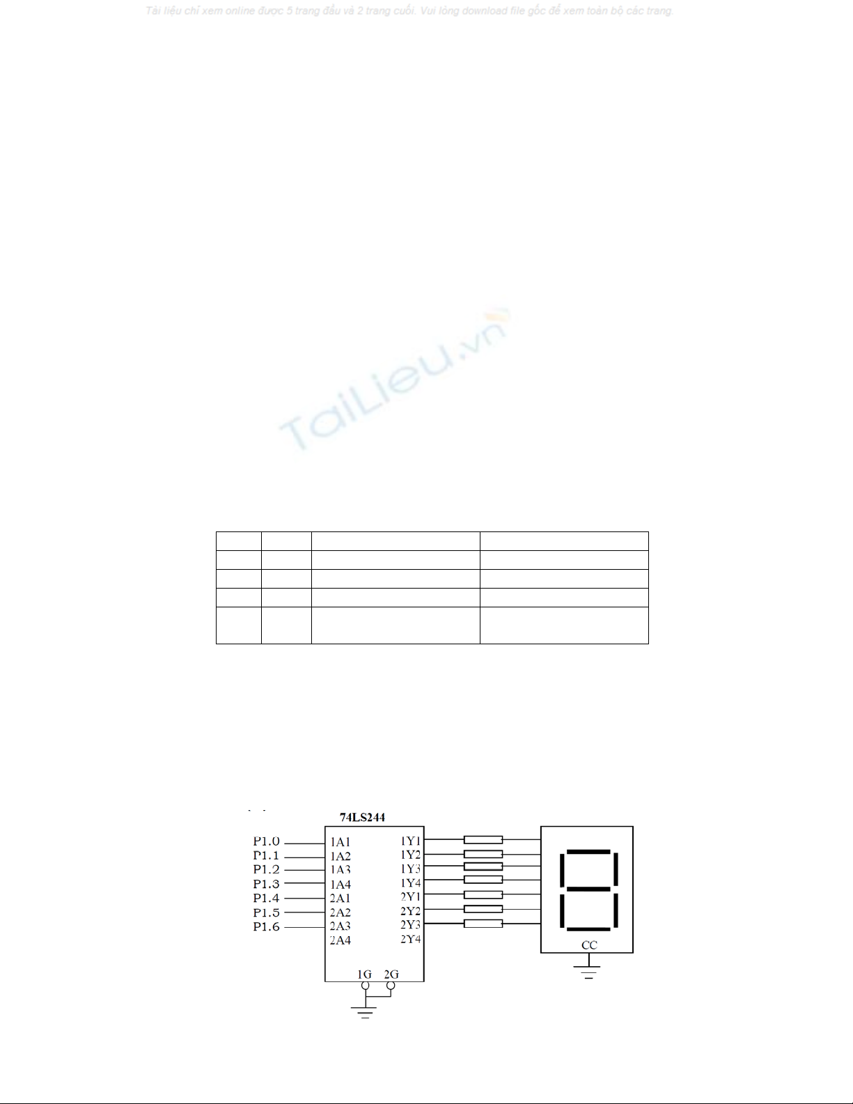 P1 được nối với các chân a đến g và dp của mạch hiển thị LED.