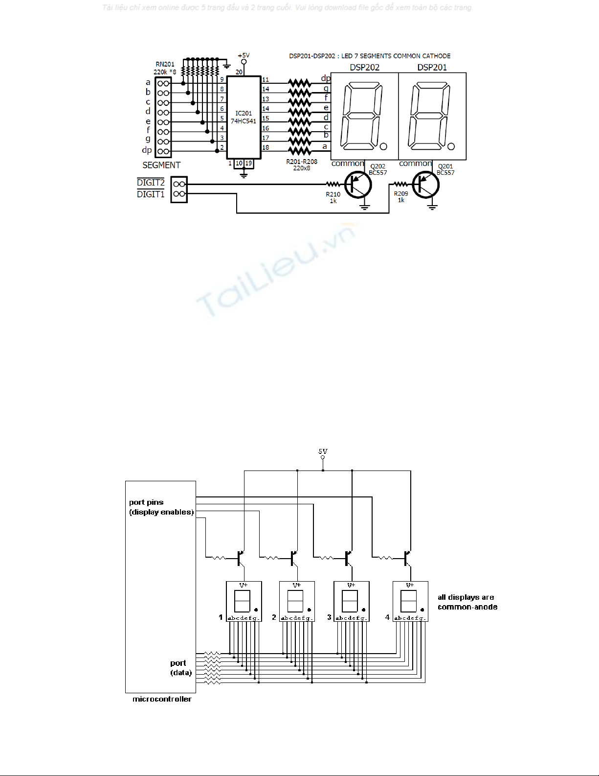 LED 7 đoạn cathod chung với các R hạn dòng là 330.