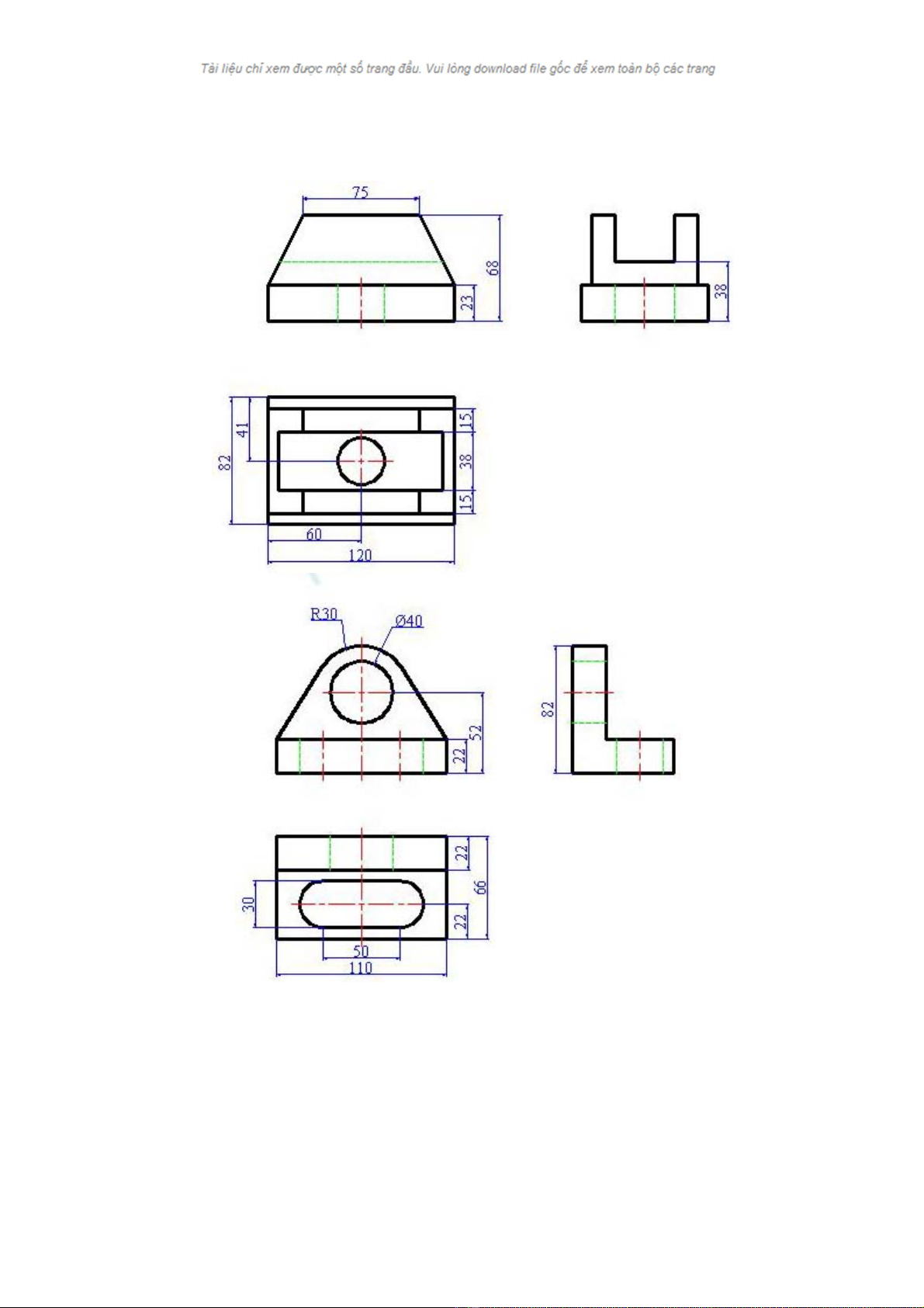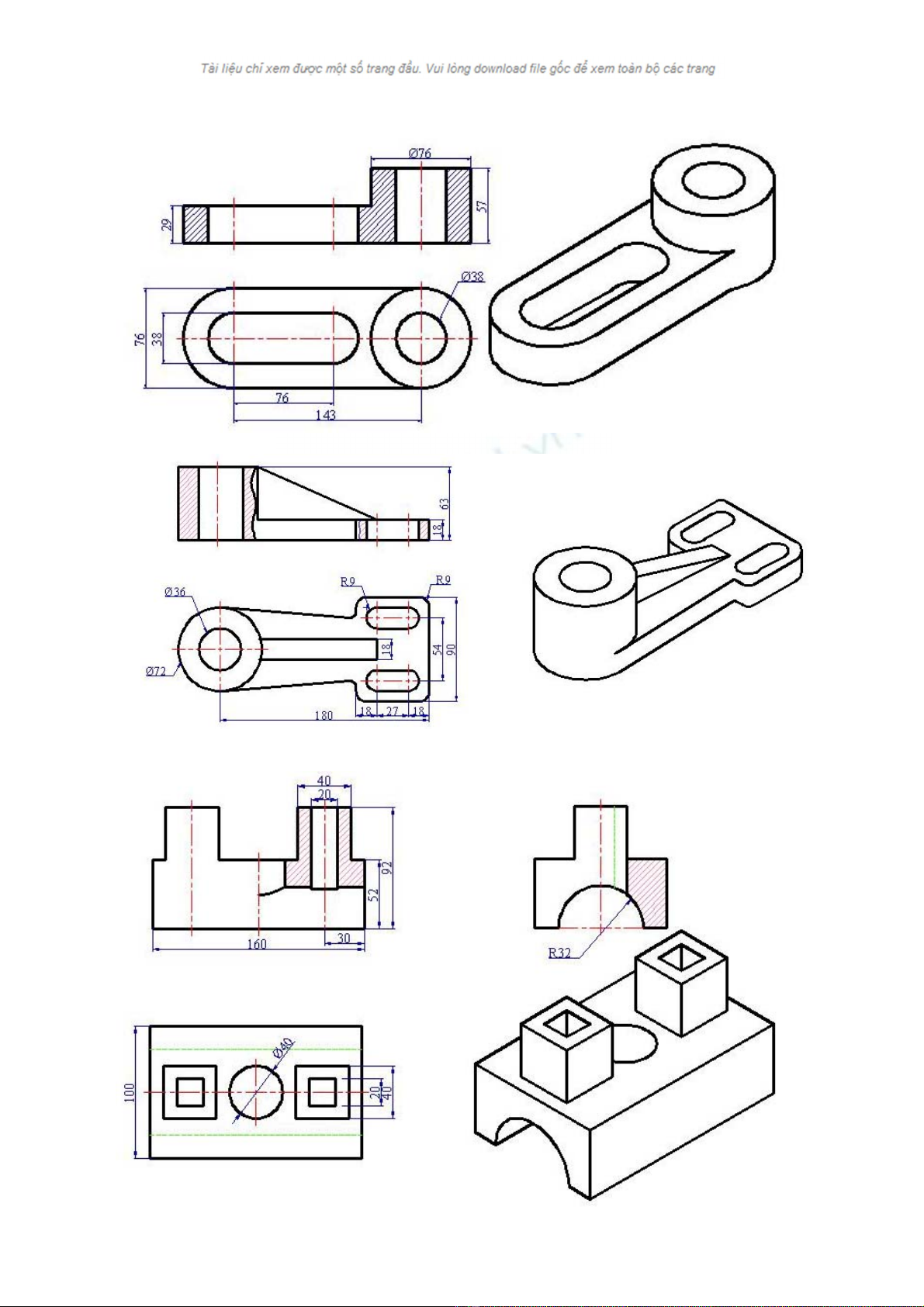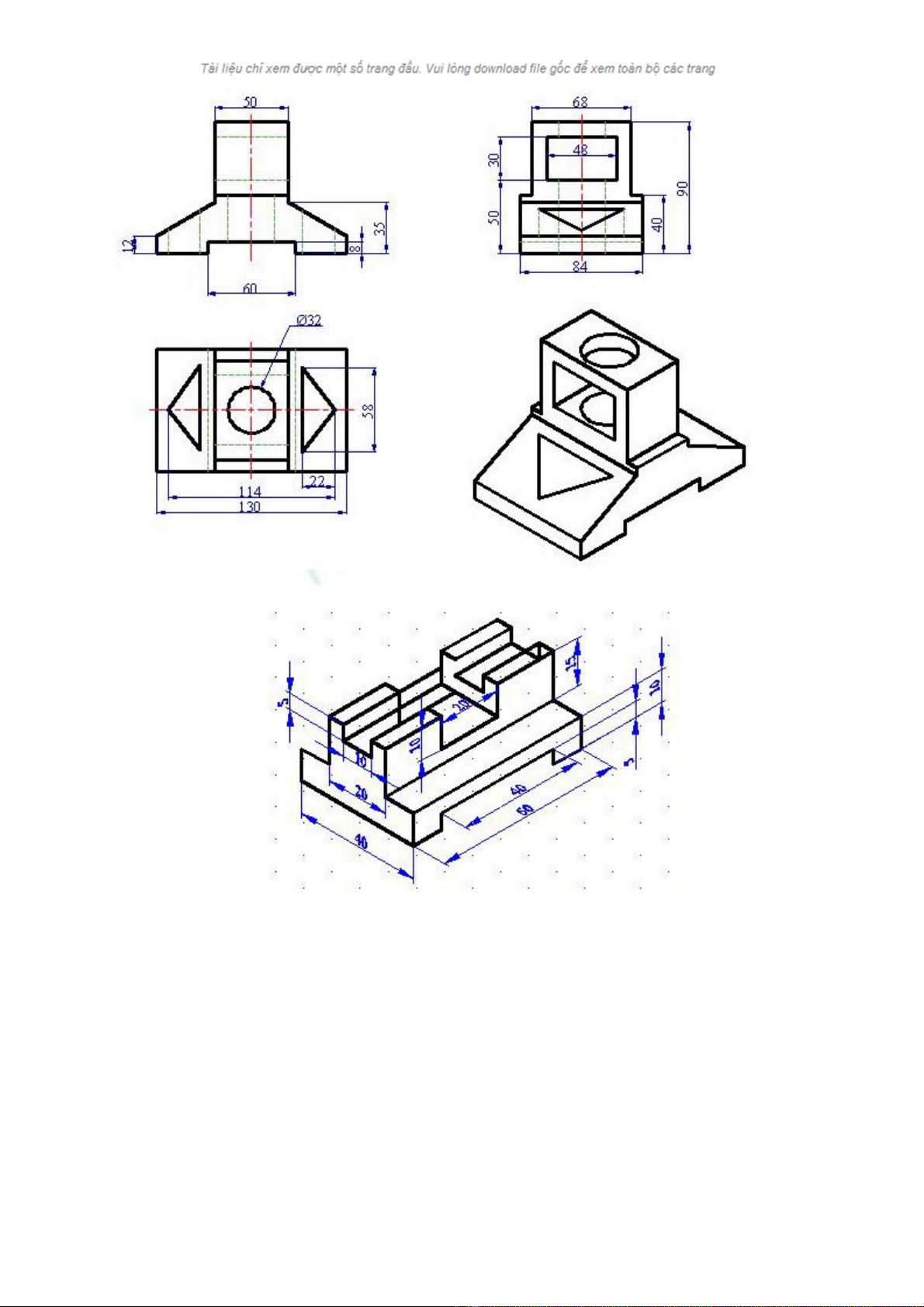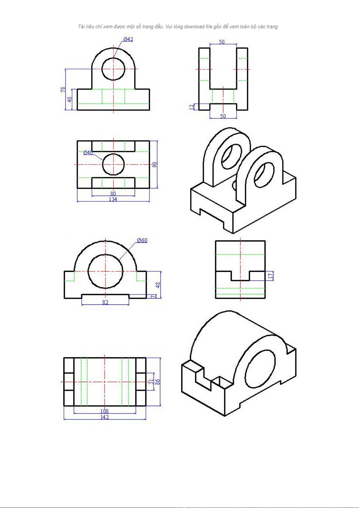 1. Kết hợp các phương pháp vẽ hình chiếu, thực hiện các bản vẽ sau với các lớp: Duongtam,