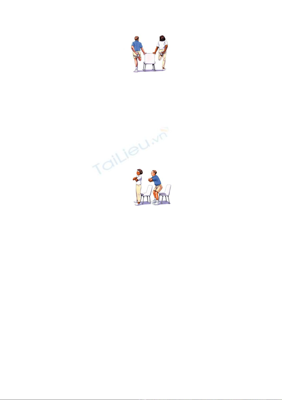 2 bàn tay vịn chặt vào ghế, bàn chân phải đặt trước chân trái 1 khoảng, gập gối phải