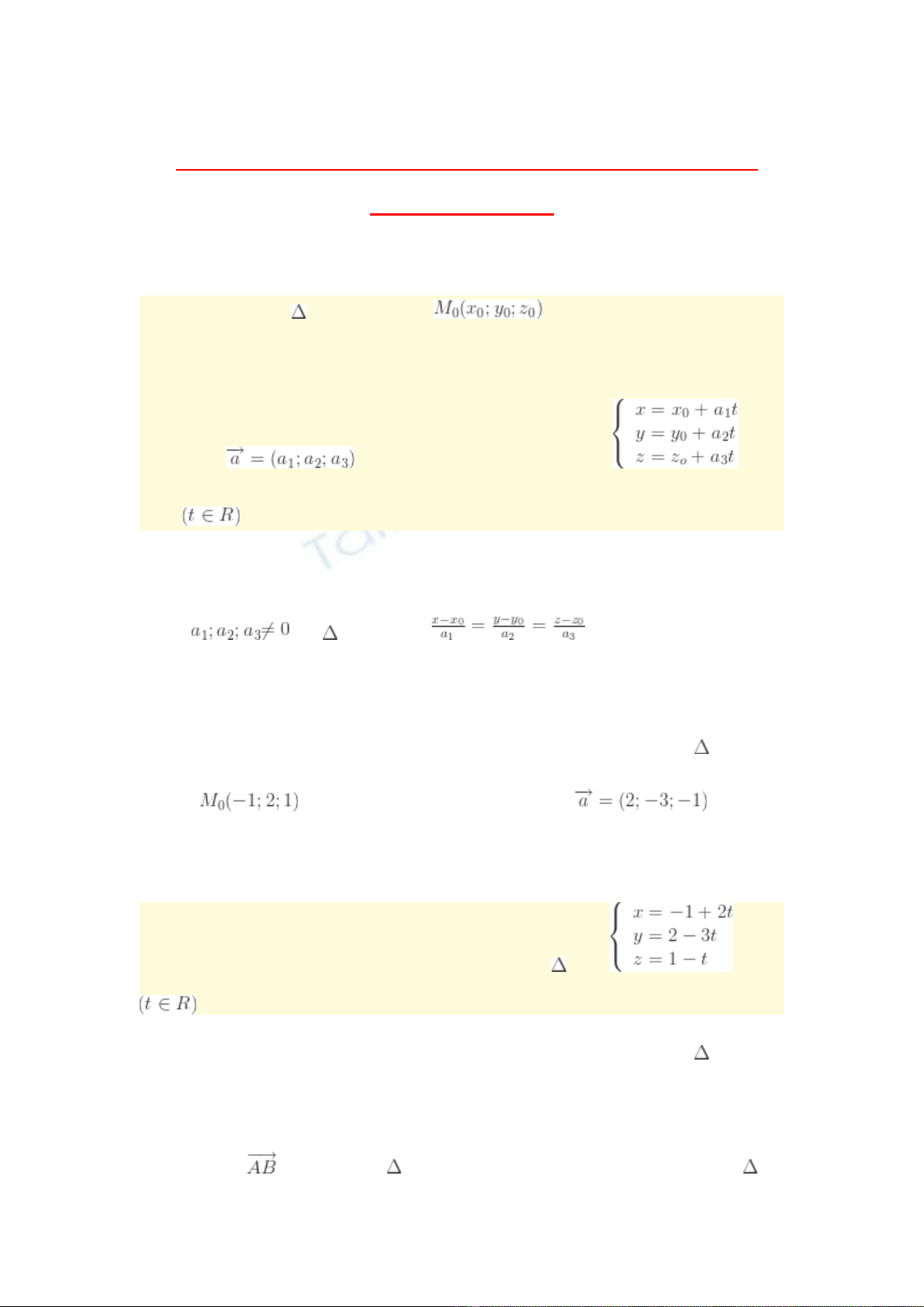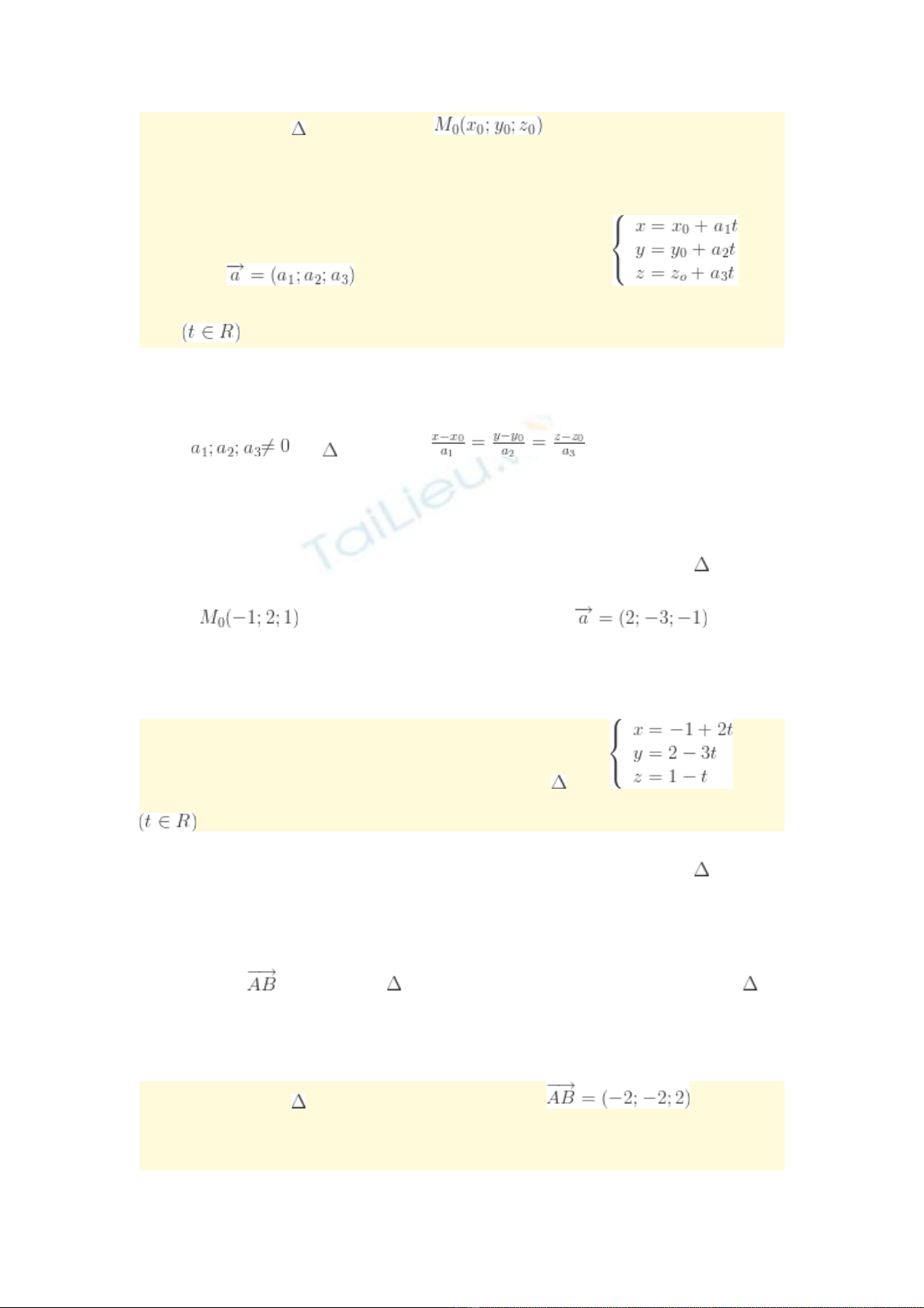 Ví d 1:ụ Vi t ph ng trình tham s c a đ ng th ngế ươ ố ủ ườ ẳ đi qua
