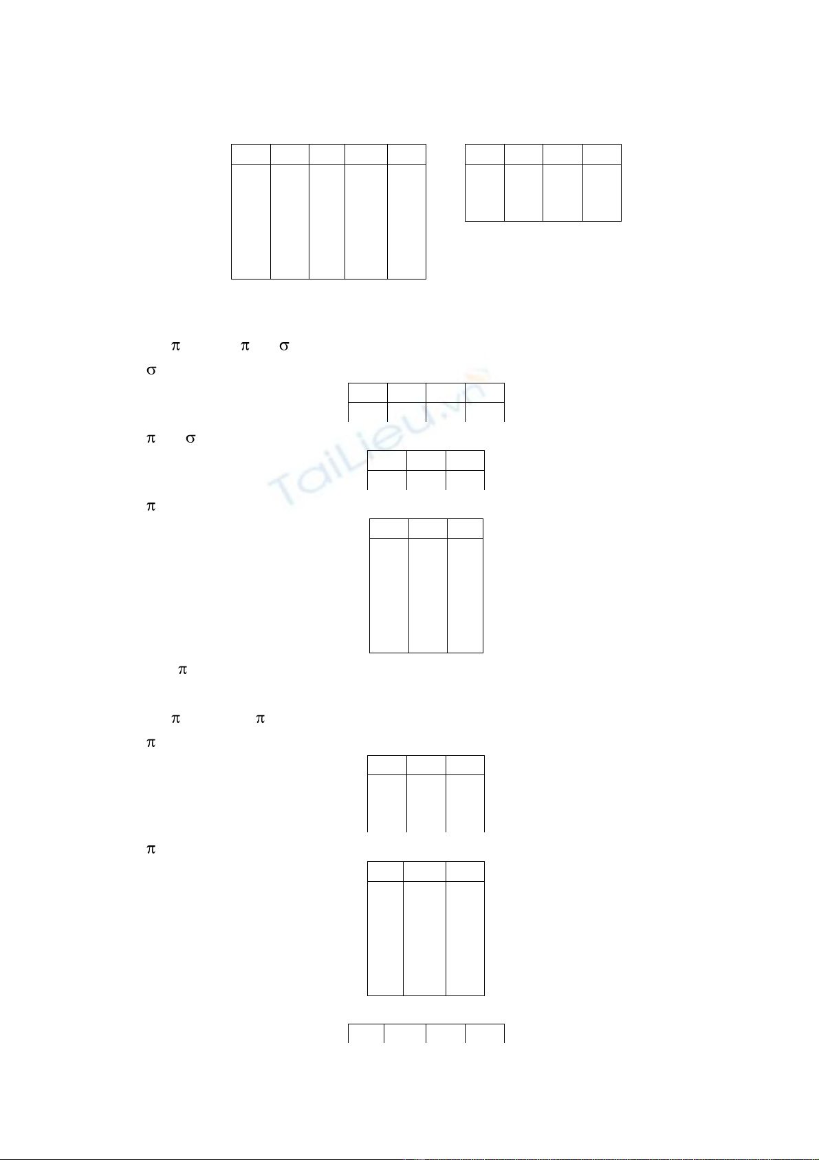 Bài 5. Cho các quan hệ sau :