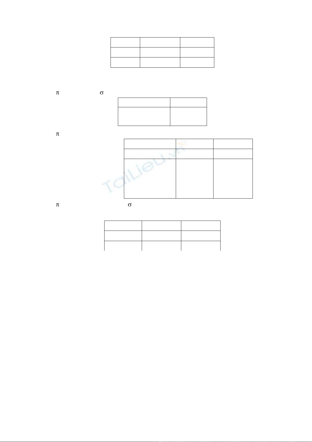 Tính các biểu thức đại số quan hệ dưới đây và cho biết chức năng của mỗi biểu thức