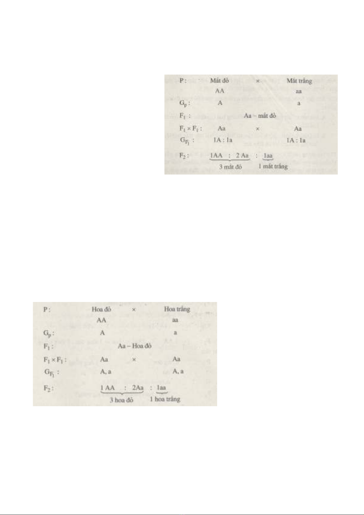 Menđen, nên hoa đ là tính tr ng tr i. Quy c A - hoa đ, a - hoa tr ng. V y, s đ lai tỏ ạ ộ ướ ỏ ắ ậ ơ ồ ừ